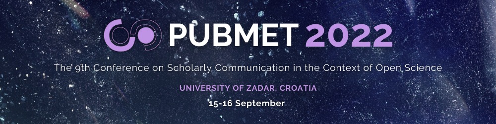 We welcome you to take part in PUBMET2022 – The 9th Conference on Scholarly Communication in the Context of Open Science. After last year’s very successful online conference with 650 registered participants, which exceptionally consisted of invited lectures, panels and workshops, this year’s conference will be more focused on the presentation and dissemination of the research data and exchange of the information and ideas from various experts, researchers, information specialists and librarians, editors, publishers, educators, policymakers, communication specialists and journalists.