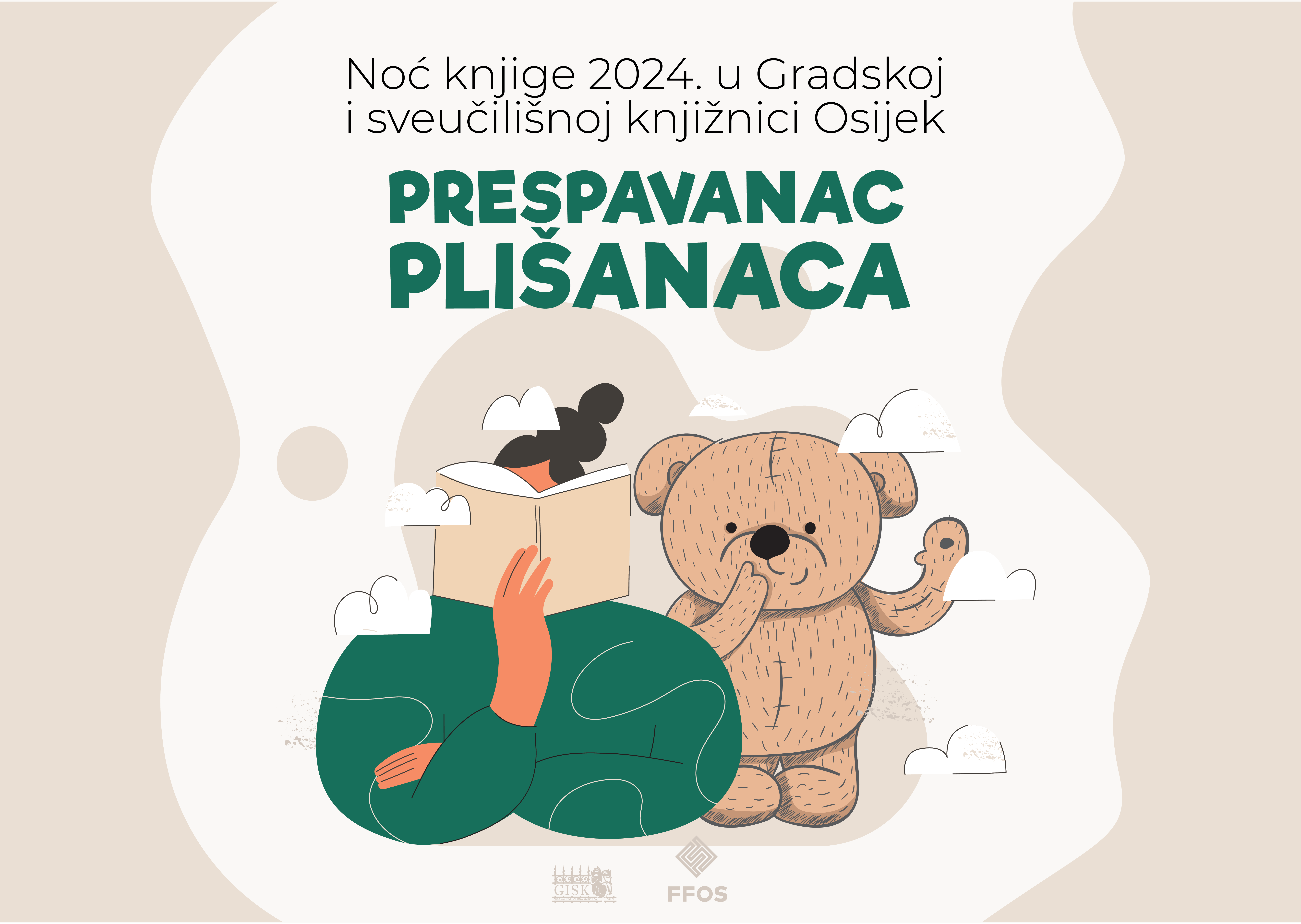 Odjel za rad s djecom i mladima Gradske i sveučilišne knjižnice Osijek u suradnji s Odsjekom za informacijske znanosti Filozofskog fakulteta u Osijeku organizira prespavanac plišanaca u Gradskoj i sveučilišnoj knjižnici Osijek koji će se održati u utorak, 23. travnja na Odjelu za rad s djecom i mladima, od 18.00 sati.