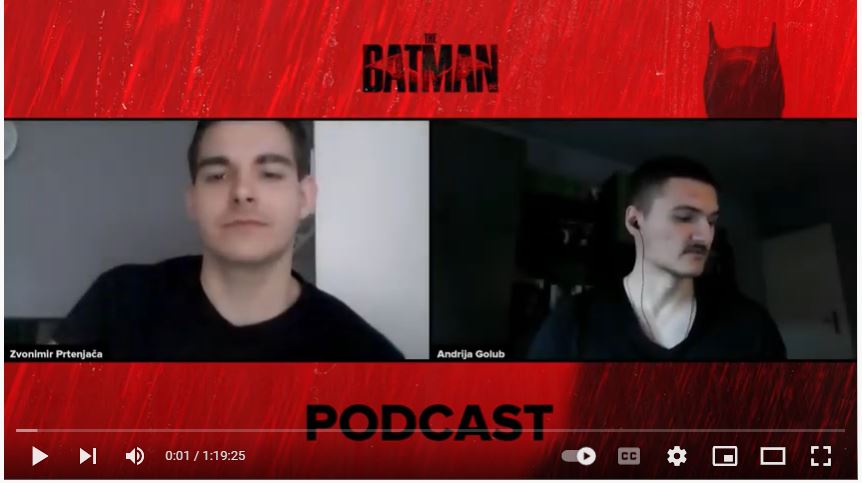 Zvonimir Prtenjača, član Centra za popularnu kulturu i vanjski suradnik na Odsjeku za engleski jezik i književnost Filozofskog fakulteta Sveučilišta Josipa Jurja Strossmayera u Osijeku, sudjelovao je u pilot epizodi podcasta koji će se baviti filmovima, TV serijama i stripovima o superjunacima te sličnim djelima iz srodnih žanrova. Prtenjača se superjunacima i književnošću bavi u svom znanstvenoistraživačkom radu, a u podcastu ga je ugostio sportski novinar i samoprozvani geek Andrija Golub. Tema razgovora navedenog dvojca je novi film o Batmanu, pri čemu, između ostaloga, publika može saznati saznati kako je redatelj Matt Reeves zamislio mračni Gotham, kako je spojio Mračnog viteza i Brucea Waynea u jedno i što bismo od njegove franšize mogli očekivati u budućnosti. Podcast možete poslušati na ovom linku: https://www.youtube.