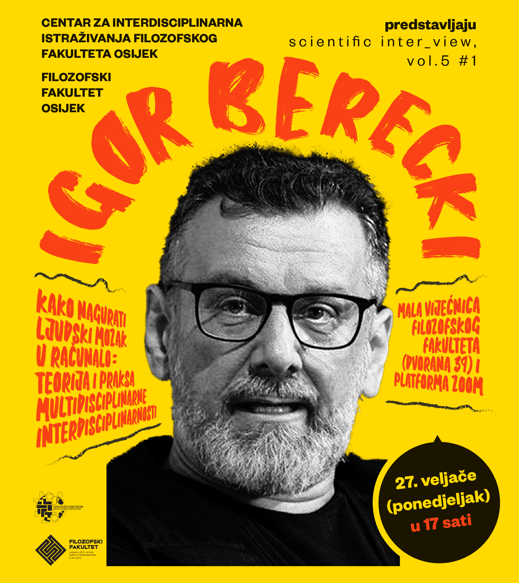 Na događaju će gostovati Igor Berecki (KBC Osijek) koji će govoriti na temu »Kako nagurati ljudski mozak u računalo: teorija i praksa multidisciplinarne interdisciplinarnosti«.