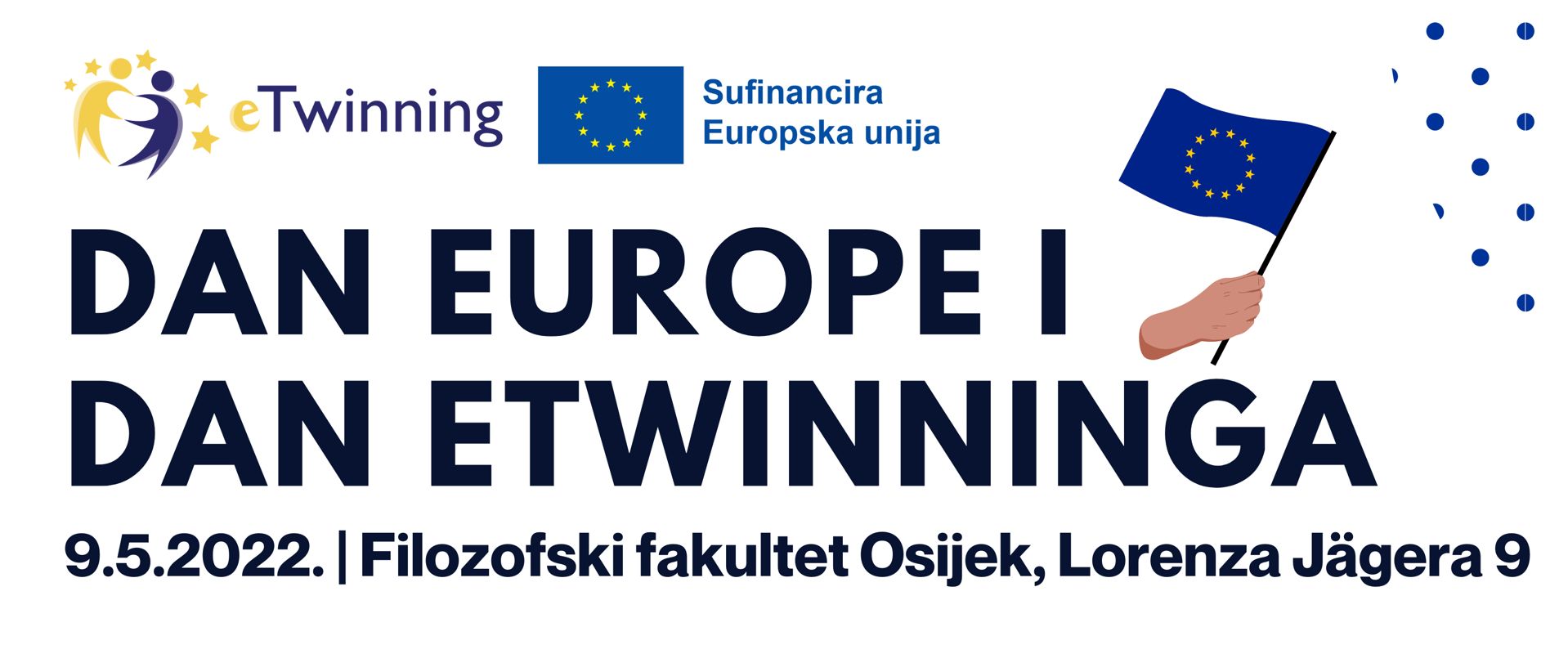 Dan Europe i eTwinninga Objavljeno 2. svibnja 2022. | Administrator Na Filozofskom fakultetu u Osijeku u ponedjeljak, 9. 5. 2022., s početkom u 12.30 sati u Svečanoj dvorani (soba 60, II. kat) održat će se proslava Dana Europe i eTwinninga.