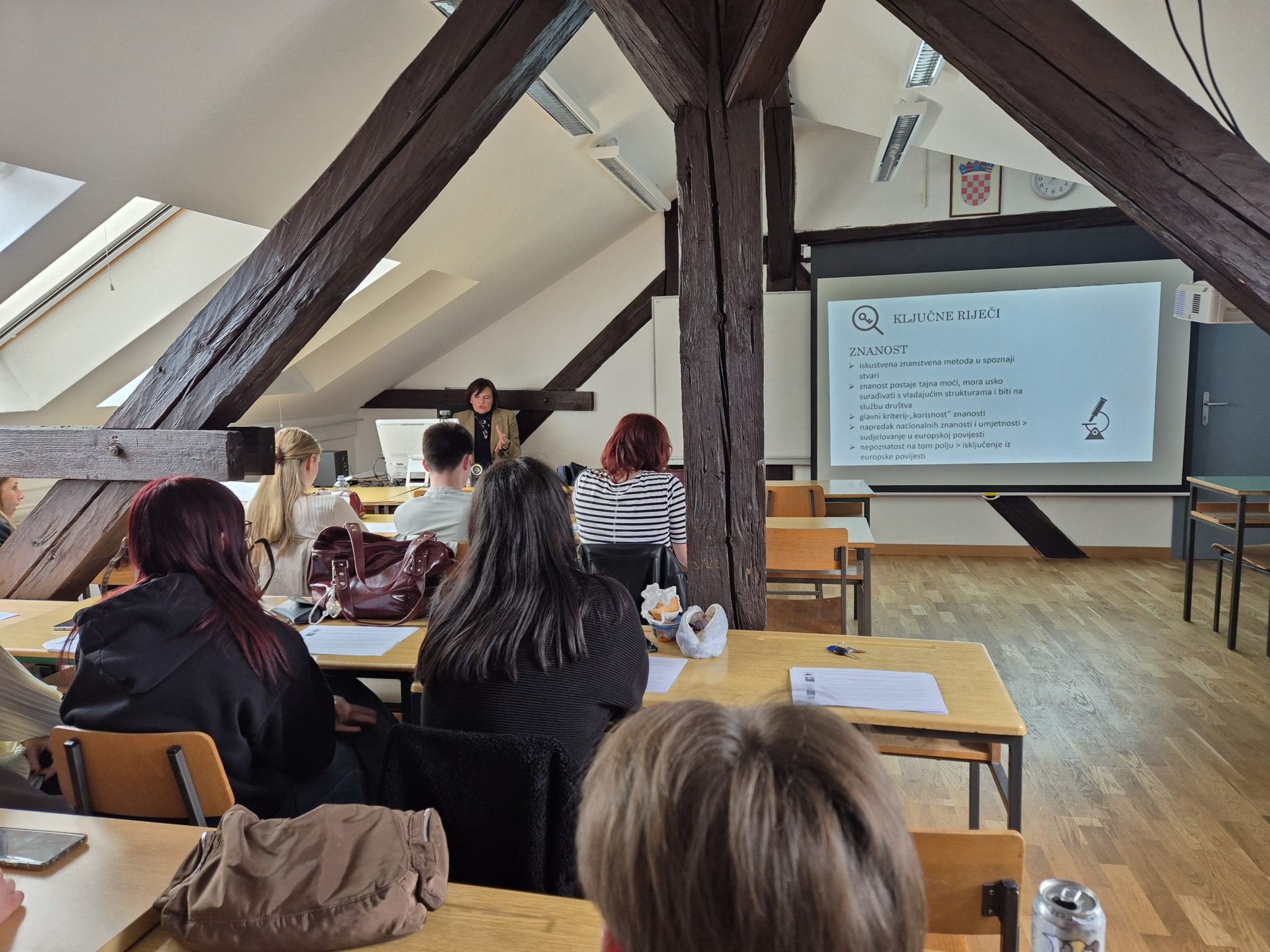 Dana 26. ožujka 2026. od 12:20 do 14:00 u prostoriji 96 u sklopu nastave iz obveznoga kolegija „Svjetska povijest ranoga novog vijeka“ za studente druge godine dvopredmetnoga prijediplomskog studija Povijesti i za sve druge zainteresirane studente i zaposlenike Fakulteta predavanje je održala znanstvena savjetnica dr. sc. Teodora Shek Brnardić Hrvatskog instituta za povijest u Zagrebu. Naslov predavanja bio je HRZZ projekt „Između znanja i neznanja“ i ključne riječi prosvjetiteljstva u hrvatskim zemljama. Predavačica je održala predavanje na temu vlastitoga vodstva istraživačkoga projekta koji financira Hrvatska zaklada za znanost i na osnovi istraživanja pisanih izvora o razdoblju 18. stoljeća na području hrvatskih zemalja, odnosno o utjecaju prosvjetiteljskih ideja na društveni i svekoliko razvoj hrvatskih zemalja u tom razdoblju. Tijekom predavanja je predavačica uspostavila komunikaciju sa studentima na temu hrvatskih prosvjetiteljskih stremljenja tijekom 18. stoljeća i tumačila je kako su prosvjetiteljske ideje ostavile traga na djelovanju hrvatskih intelektualaca toga vremena. Nakon vrlo zanimljivog predavanja studenti i prisutni nastavnici su gošći predavačici postavili nekoliko pitanja.