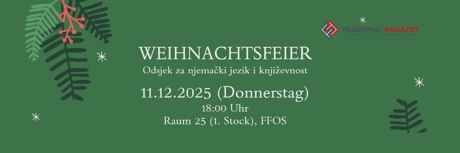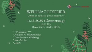 Einladung zur WeihnachtsfeierOdsjek za njemački jezik i književnost Objavljeno 5. prosinca 2025. | Snježana Babić