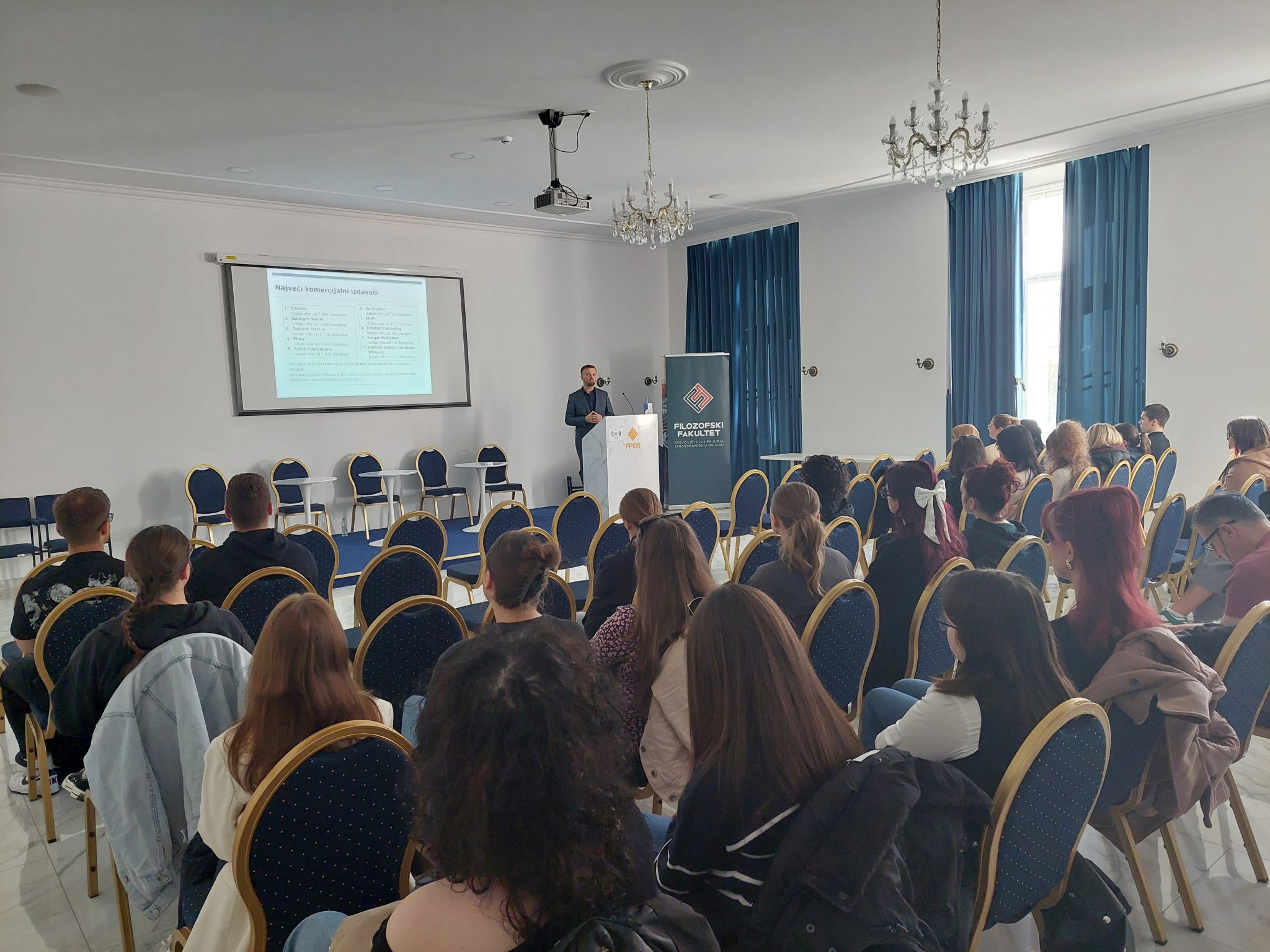 Dana 28. listopada 2025. godine s početkom u 14 sati u Maloj vijećnici Filozofskog fakulteta u Osijeku održano je gostujuće predavanje izv. prof. dr. sc. Enesa Sukića o trenutnim izazovima u znanstvenom izdavaštvu. Izv. prof. dr. sc. Enes Sukić s Fakulteta informacijskih tehnologija i inženjerstva Sveučilišta Union Nikola Tesla, Beograd, Srbija je priznati stručnjak za informacijske sustave i web programiranje, te urednik i zamjenik urednika nekoliko vodećih znanstvenih časopisa. Osnivač je i predsjednik UIKTEN-a, organizacije posvećene informacijskim i komunikacijskim tehnologijama, obrazovanju i znanosti. Jedna od ključnih inicijativa je TEM Journal, znanstvena publikacija indeksirana u Web of Science i Scopusu, koja sadrži istraživanja autora iz preko 90 zemalja. Uz znanstveni rad, vrlo je aktivan na području popularizacije znanosti, a kao stručnjak na području izdavaštva održao je niz pozvanih predavanja. Dobitnik je brojnih nagrada i priznanja. Predavanje je bilo namijenjeno studentima diplomskog studija informacijske tehnologije i nakladništva, a bavilo se temama kao što su sve veći pritisak na istraživače da objavljuju, promjenjivi kriteriji za mjerenje znanstvenog napretka i izazovi pronalaženja visokokvalitetnih platformi za objavljivanje. Posebna pozornost posvećena je preprekama s kojima se suočavaju autori iz zemalja sa srednjim dohotkom, kao i utjecaju sadržaja generiranog umjetnom inteligencijom i nedostatku kvalificiranih recenzenata u akademskom izdavaštvu.