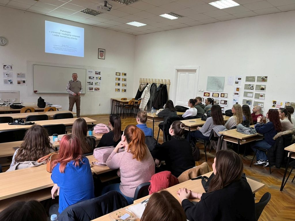 Predavanje je studentima dalo uvid u poslove, zadaće i aktivnosti psihologa u zdravstvu u okviru prevencije i suzbijanja ovisnosti te proaktivne skrbi o mentalnom zdravlju u javnozdravstvenom sustavu, a prikazani su im i primjeri i rezultati provedenih istraživanja koja su temelj u provedbi preventivnih aktivnosti. Kolega Brlas studentima je predstavio edukativne materijale i publikacije iz područja prevencije i suzbijanja ovisnosti te proaktivne skrbi o mentalnom zdravlju i promocije mentalnog zdravlja mladih.