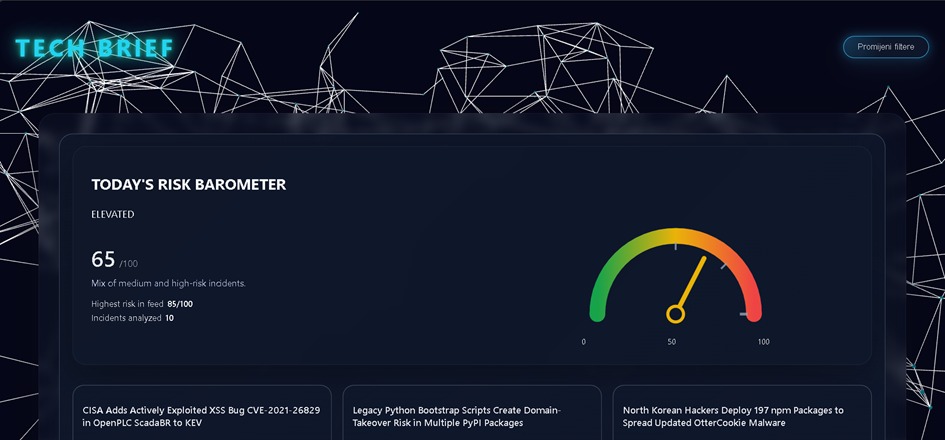 IT@FFOS tim u predviđenom je vremenu razvio aplikaciju Tech Brief, osmišljenu kao alat za brzo informiranje o tehnološkim i sigurnosnim vijestima. Sustav omogućuje automatizirano prikupljanje i sažimanje sadržaja te označavanje potencijalno nepouzdanih informacija kako bi korisnici dobili kratak i pouzdan pregled ključnih događaja iz područja kibernetičke sigurnosti. U razvoju su korišteni Node.js, Express, React i Vite, uz integraciju s OpenAI API-jem koja je omogućila inteligentnu analizu i sažimanje vijesti. Čitav GitHub repozitorij na kojem se nalazi Tech Brief dostupan je na sljedećoj poveznici: https://github.com/lorena-ober/sheepAI_IT-FFOS. Repozitorij je javan te svi koji ga kloniraju mogu lokalno pokrenuti aplikaciju i testirati ju na svom računalu.
