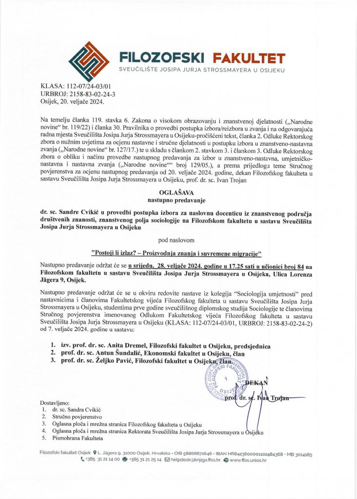 Početna stranica » Nastupno predavanje dr. sc. Sandre Cvikić