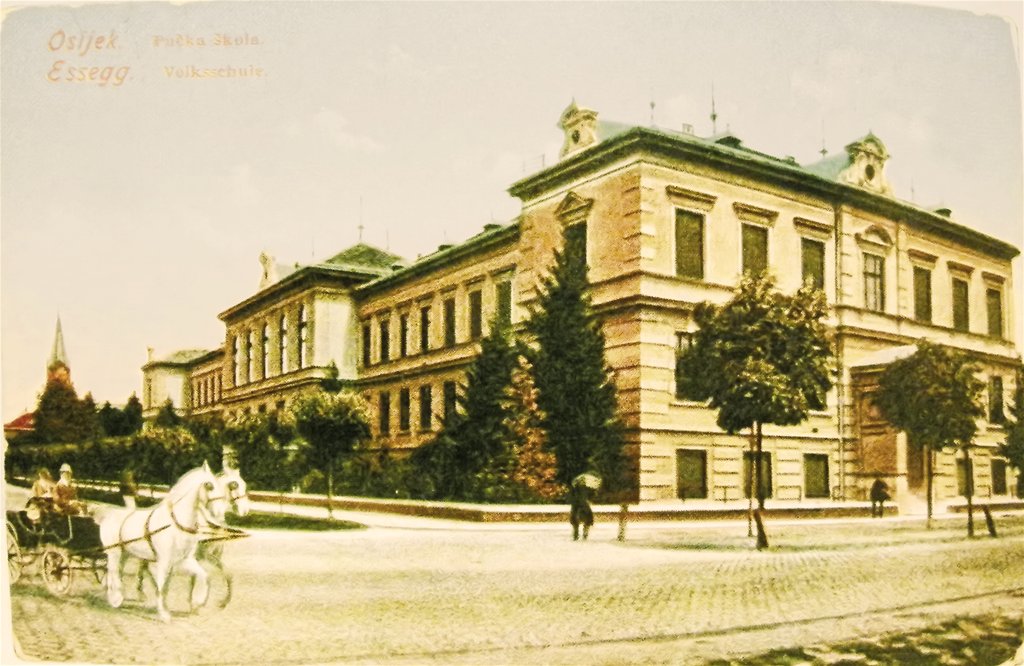 Jeste li znali da je monumentalna troetažna zgrada našega Fakulteta izvorno građena kao nova gornjogradska Pučka škola? Krajem 1888. godine Poglavarstvo Slobodnoga i kraljevskoga grada Osijeka donijelo je odluku o izgradnji nove školske zgrade, a u jesen 1890. odlučeno je da se zgrada podigne na današnjoj lokaciji. Zgrada u kojoj se danas nalazi Filozofski fakultet u Osijeku sagrađena je 1895. godine.