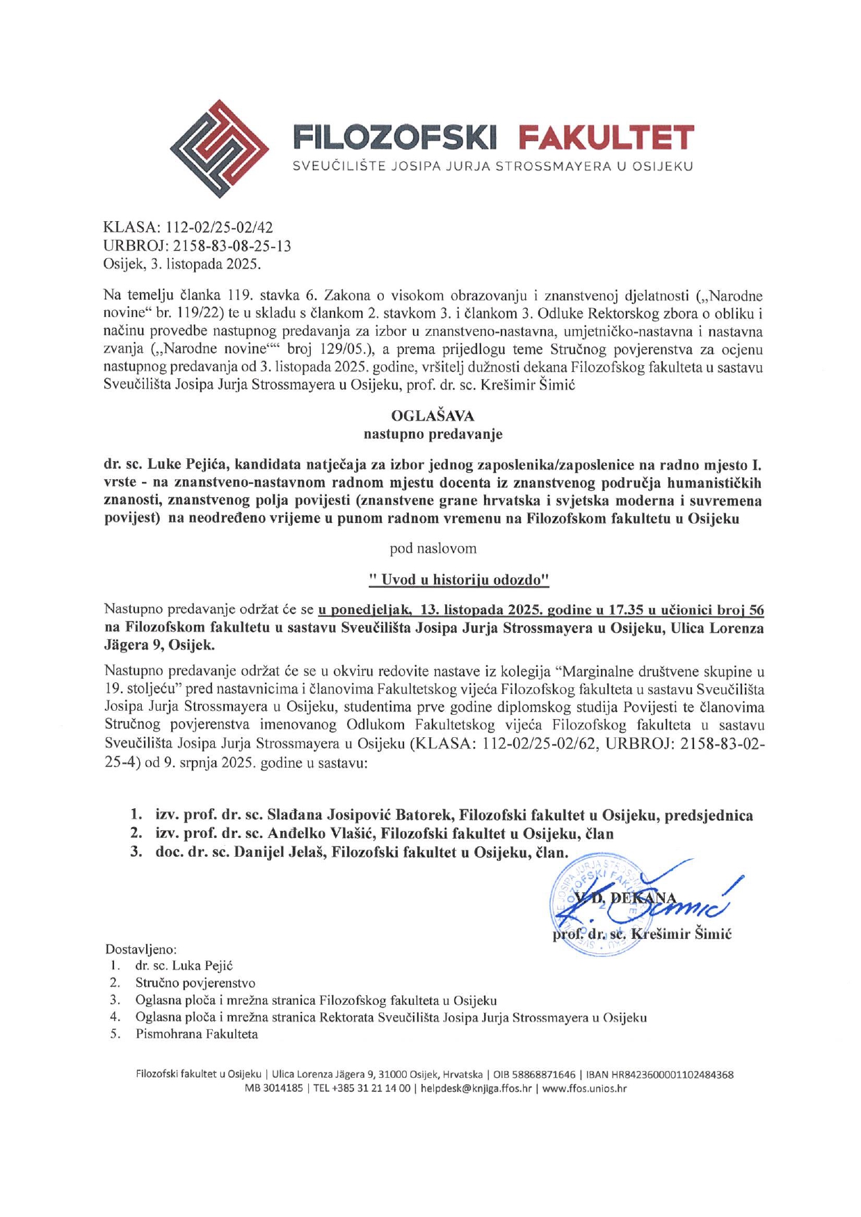 Obavijest o nastupnom predavanju: dr. sc. Luka Pejić Objavljeno 3. listopada 2025. | Administrator PDF-dokument