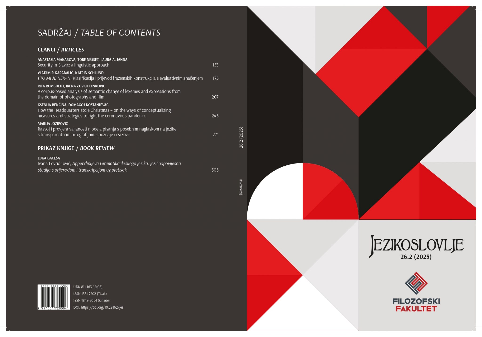 Objavljen novi broj JezikoslovljaOdsjek za hrvatski jezik i književnost Objavljeno 14. siječnja 2026. | Domagoj Kostanjevac Objavljen je novi broj časopisa Jezikoslovlje koji uređuju naši profesori Branimir Belaj i Ana Mikić Čolić. Broj možete pogledati na sljedećoj poveznici: https://jezikoslovlje.ffos.hr/hr/aktualni-broj