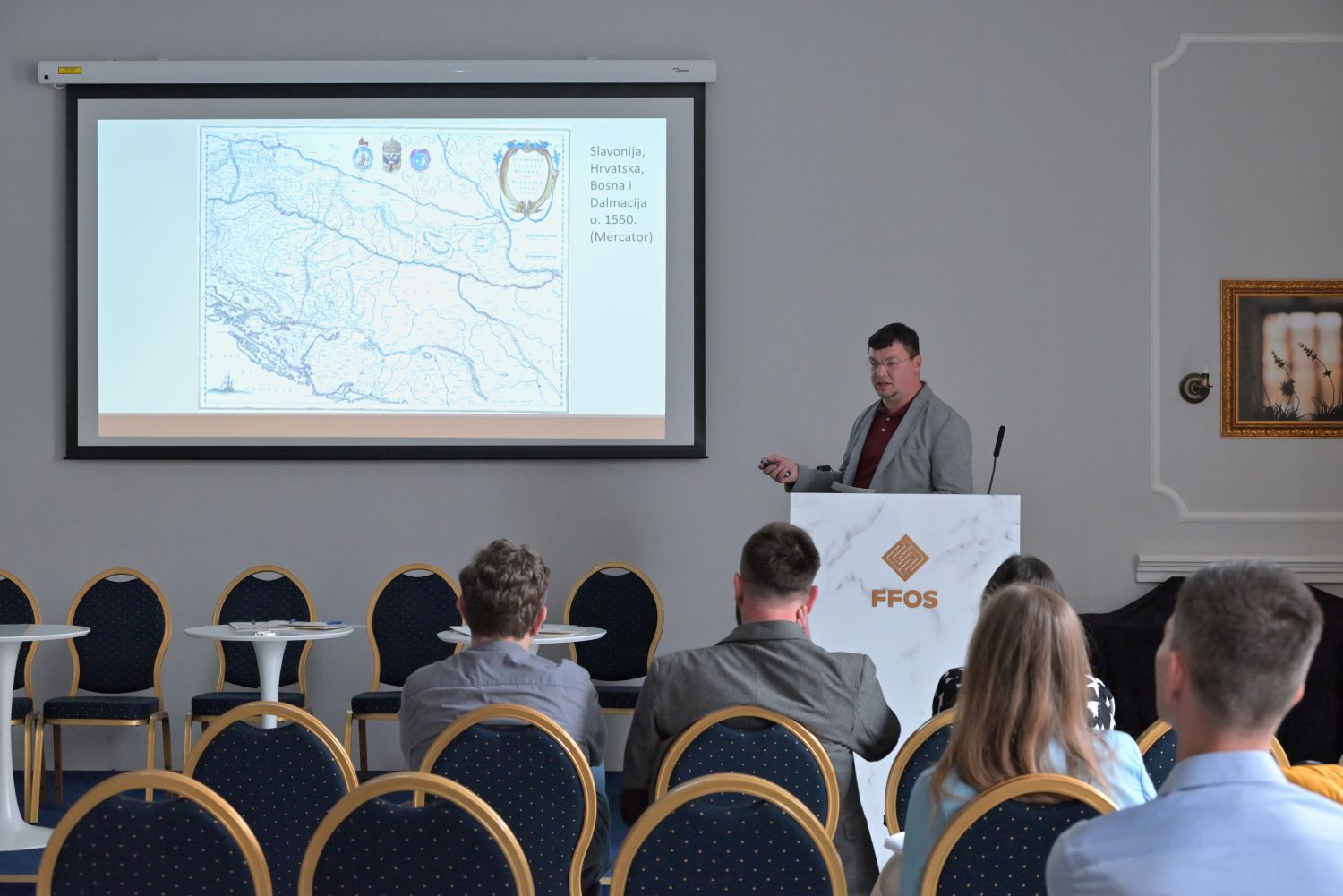 Prvi dan programa obilježila su izlaganja dr. sc. Stanka Andrića, dr. sc. Roberta Skenderovića te izv. prof. dr. sc. Hrvoja Kekeza uz održanu studentsku radionicu. Dr. sc. Stanko Andrić predstavio je svoju istraživačku temu „Horonim Slavonija i njegove uporabe u ranom srednjem vijeku“. U svom je izlaganju istaknuo značenje i razliku etnotnima i egzonima Slaveni te njihovo moguće podrijetlo, etničke sastavnice Svetog Rimskog Carstva i važnost povijesnog izvora Nestorova kronika koji je vrijedan doprinos povijesti slavenskih naroda. Dr. sc. Robert Skenderović izložio je temu „Prijelomno 17. stoljeće – pomak pojma Slavonije na istok“. U predavanju je prikazao razlike povijesnog prikaza prostora Slavonije na primjeru Mercatorove karte koja datira u 16. stoljeće, povijesnih karata Slavonije te osmanlijskih izvora o području požeškog sandžaka koji je obuhvaćao današnji slavonski prostor. Širenje Slavonije u 17. stoljeću utječe na izmjenu percepcije povijesnog prostora u kartama i drugim povijesnim izvorima te određenje slavonskog i hrvatskog identiteta. Skenderović upozorava na važnost etničke strukture stanovništva i smještanje hrvatske vojske u pogranični prostor, uz djelovanje slavonskih franjevaca i zagrebačke biskupije koji su prepoznali početak slabljenja Osmanskog Carstva.