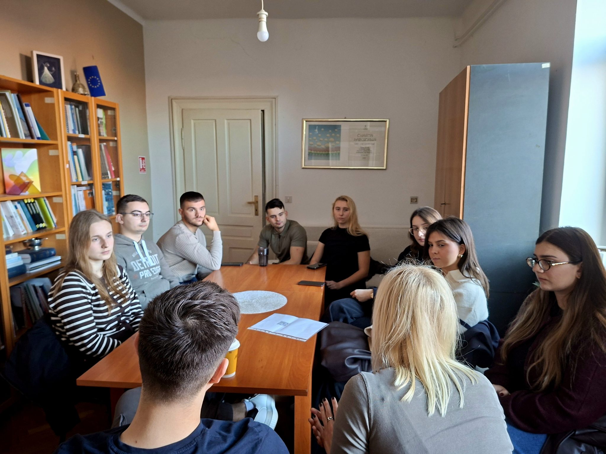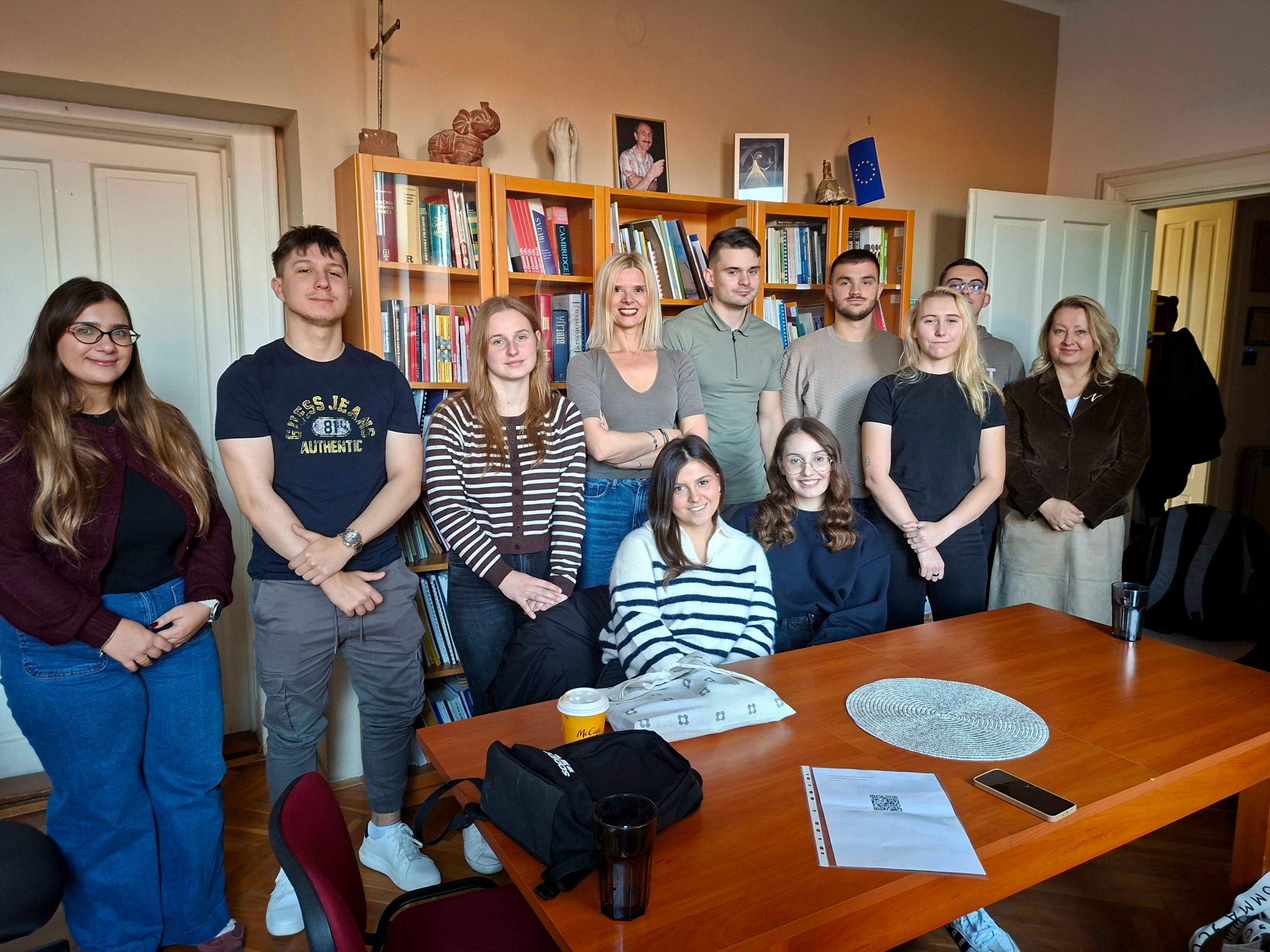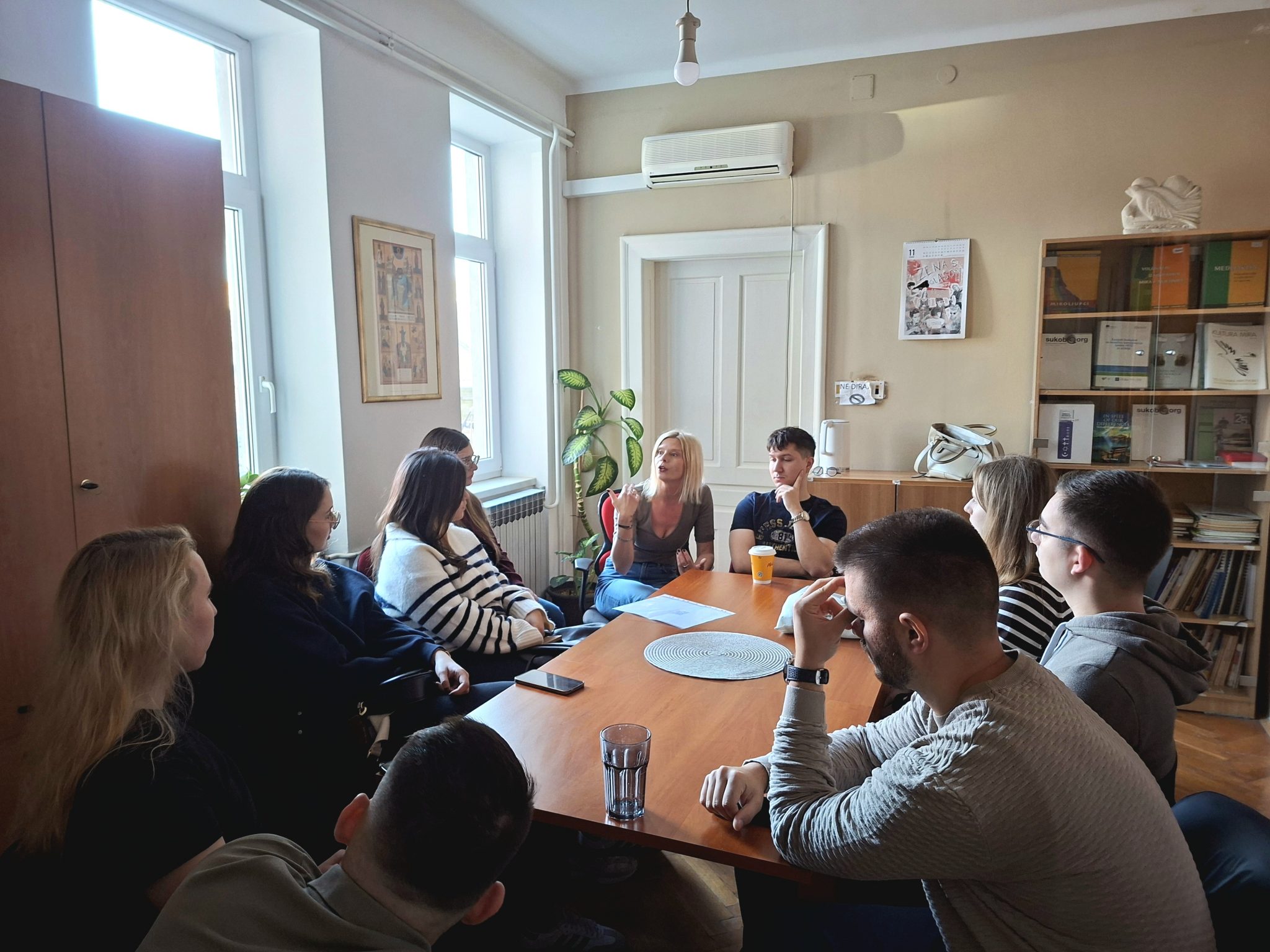 Studenti 1. godine diplomskog sveučilišnog dvopredmetnog studija Sociologija i Filozofija na kolegiju Ljudska prava: osnove i zaštita s nastavnicom Narcisom Vrbešić-Ravlić, univ. mag. iur., spec. iur. (ljudskih prava), posjetili su Centar za mir, nenasilje i ljudska prava u Osijeku. U Centru ih je dočekala direktorica Natalija Havelka, univ. mag. iur., spec. iur., koja im je predstavila Centar i djelatnosti s kojima se Centar bavi. Tijekom predavanja studenti su imali prilike upoznati se s najugroženijim ljudskim pravima u Hrvatskoj, prije svega u lokalnom kontekstu te dobiti nove spoznaje o načinima zaštite i promicanja svijesti o potrebi zaštite najugroženijih skupina. Predavanje o ljudskim pravima donijelo je uvid u praktičnu primjenu sadržaja kojim se studenti bave tijekom nastave te u sklopu toga razvijanje znanja i korelacije prepoznavanja potrebe zaštite temeljnih ljudskih prava i primjene sustava i načina njihove zaštite. Uvidom u stvarno stanje i probleme zbog ugroženih ljudskih prava s kojima se Centar bavi studenti su dobili mogućnost uvida u sve veću potrebu zaštite ugroženih ljudskih prava u praksi i svakodnevnom životu. Osječki Centar za mir, nenasilje i ljudska prava najstariji je Centar takve vrste u Hrvatskoj i kao takav dodjeljuje i Nagradu za promicanje mirotvorstva, nenasilja i ljudskih prava „Miroslav Sukić“ koja se ove godine dodjeljuje 9. prosinca 2025., a studenti su dobili poziv na dodjelu te važne nagrade. Direktorica Natalija Havelka pohvalila je aktivnost studenata tijekom predavanja te Filozofski fakultet u Osijeku koji je uvođenjem kolegija iz područja ljudskih prava iskoračio u suvremene nastavne pristupe i prijeko potrebna znanja o ljudskim pravima i načinima njihove zaštite.