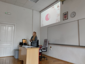 Prof. dr. sc. Sanja Ninković s Odsjeka za germanistiku Filozofskog fakulteta u Novom Sadu održala je 26. studenog 2025. godine na Odsjeku za njemački jezik i književnost Filozofskog fakulteta u Osijeku gostujuće predavanje pod nazivom „Nonverbale Euphemismen und nonverbale Tabus im Deutschen“ („Neverbalni eufemizmi i neverbalni tabui u njemačkome jeziku“). Predavanje su slušali studenti prijediplomskog i diplomskog studija njemačkog jezika i književnosti kao i kolege nastavnici. Prof. Ninković jednostavno je, razumljivo i studentima pristupačno prvo objasnila pojmove eufemizam i tabu, a zatim na isti način govorila o nastanku i funkciji tabua u društvu, o njihovu postojanju u svakom jeziku i svakoj kulturi te odnosu pripadnika neke jezične i kulturne zajednice prema njima. Predavačica je interaktivno tumačila problematiku neverbalnih tabua dajući primjere iz europskog kulturnog kruga, ali i iz drugih kultura te pri tome naglasila važnost poznavanja ciljne kulture i njezinih posebnosti. Budući da se s tabuima neizostavno povezuju i eufemizmi, drugi se dio predavanja odnosio na prepoznavanje neverbalnih eufemizama u različitim kontekstima. Prof. Ninković navela je niz primjera neverbalnih eufemizama iz vlastitog nastavničkog iskustva, ali i iz pop-kulture, medija i svakodnevne komunikacije. Gostujuće predavanje nije bilo samo izuzetno zanimljivo, kako studentima tako i kolegama nastavnicima, nego i poticajno za prepoznavanje neverbalnih eufemizama i tabua u vlastitom okruženju.