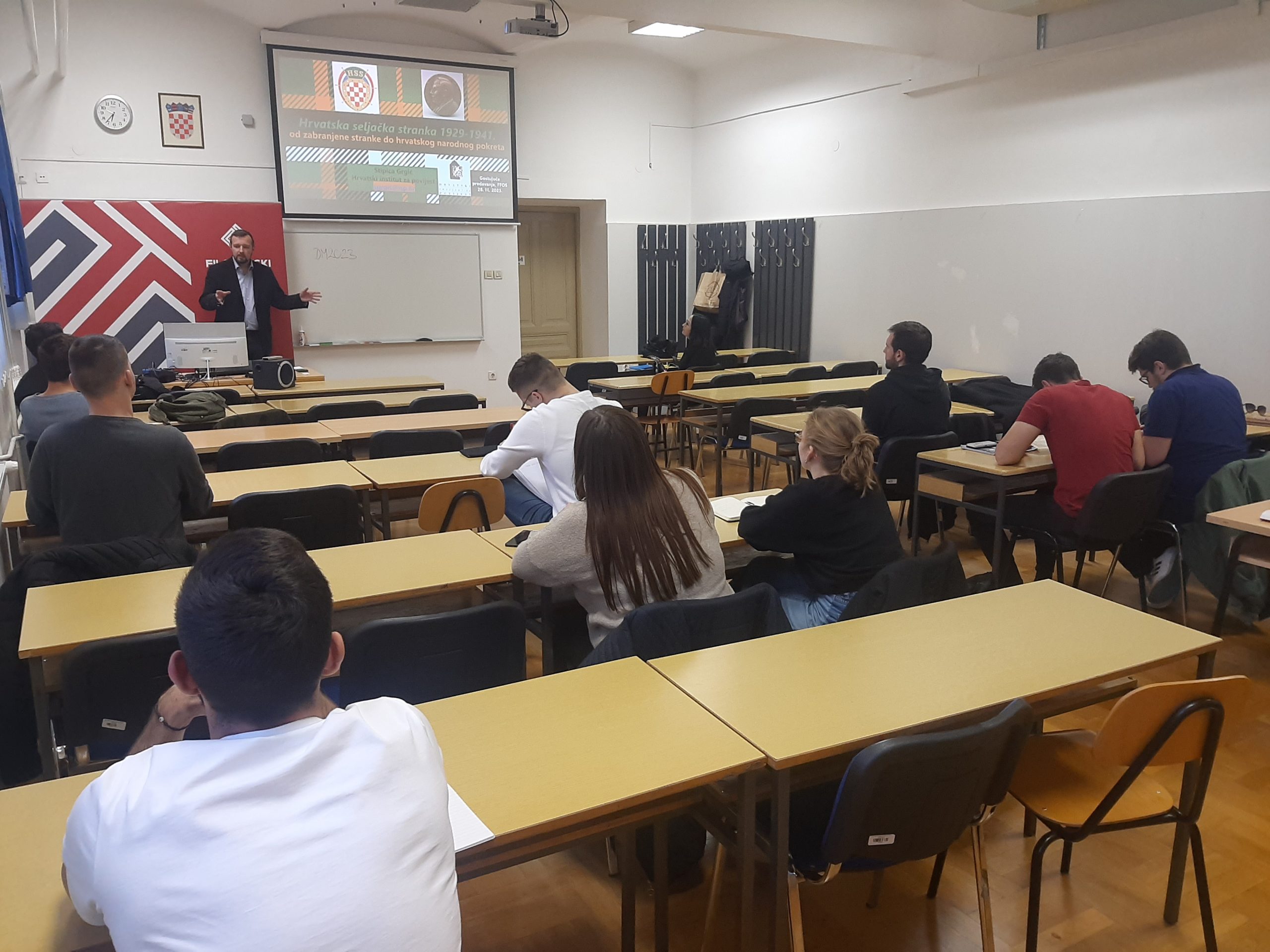 Tijekom predavanja studenti i ostali zainteresirani imali su prilike saznati kako se Hrvatska seljačka stranka u razdoblju Šestosiječanjske diktature u Kraljevini Jugoslaviji isprofilirala kao nositeljica općenacionalnog pokreta te kako je dovela do uspostave Banovine Hrvatske, u kojoj je organizirala vlast u specifičnim okolnostima nadolazećih ratnih sukoba u okviru Drugog svjetskog rata. Pritom su studenti imali prilike vidjeti i autentična odlikovanja te novac koji se koristio u Kraljevini Jugoslaviji, a na kraju predavanja predavaču su uputili niz zanimljivih pitanja.