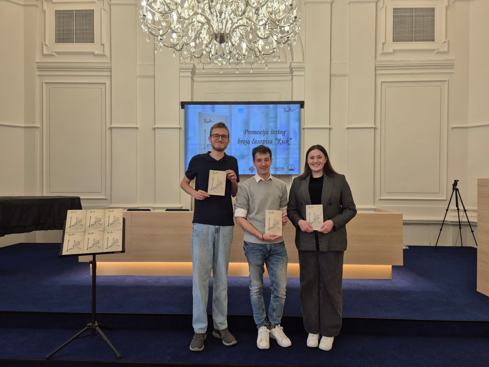 22. listopada uredništvo studentskog časopisa Kick održalo je promociju 6. broja časopisa. Na predstavljanju su se uz urednike okupili autori priloga u časopisu i recenzenti, kojima su uručeni prigodni pokloni, te zainteresirani studenti koji su pozvani na suradnju i sudjelovanje u sljedećem broju časopisa. Čestitamo Kicku na 6. broju i ponavljamo poziv uredništva. Informacije o časopisu i predaji radova, prethodne brojeve, uključujući i najnoviji, pronađite ovdje.