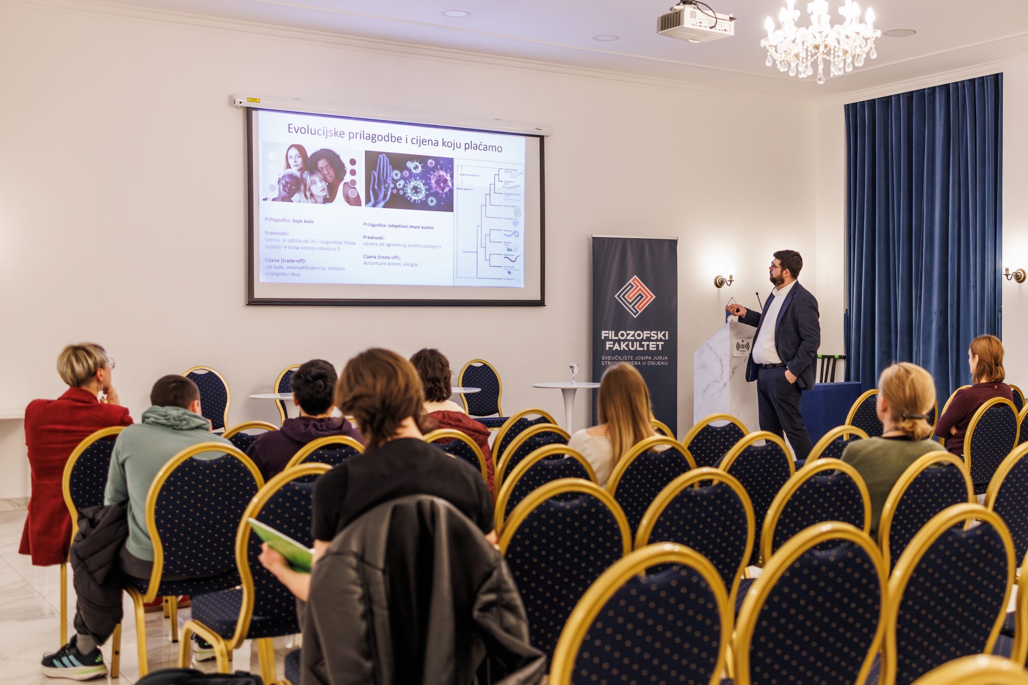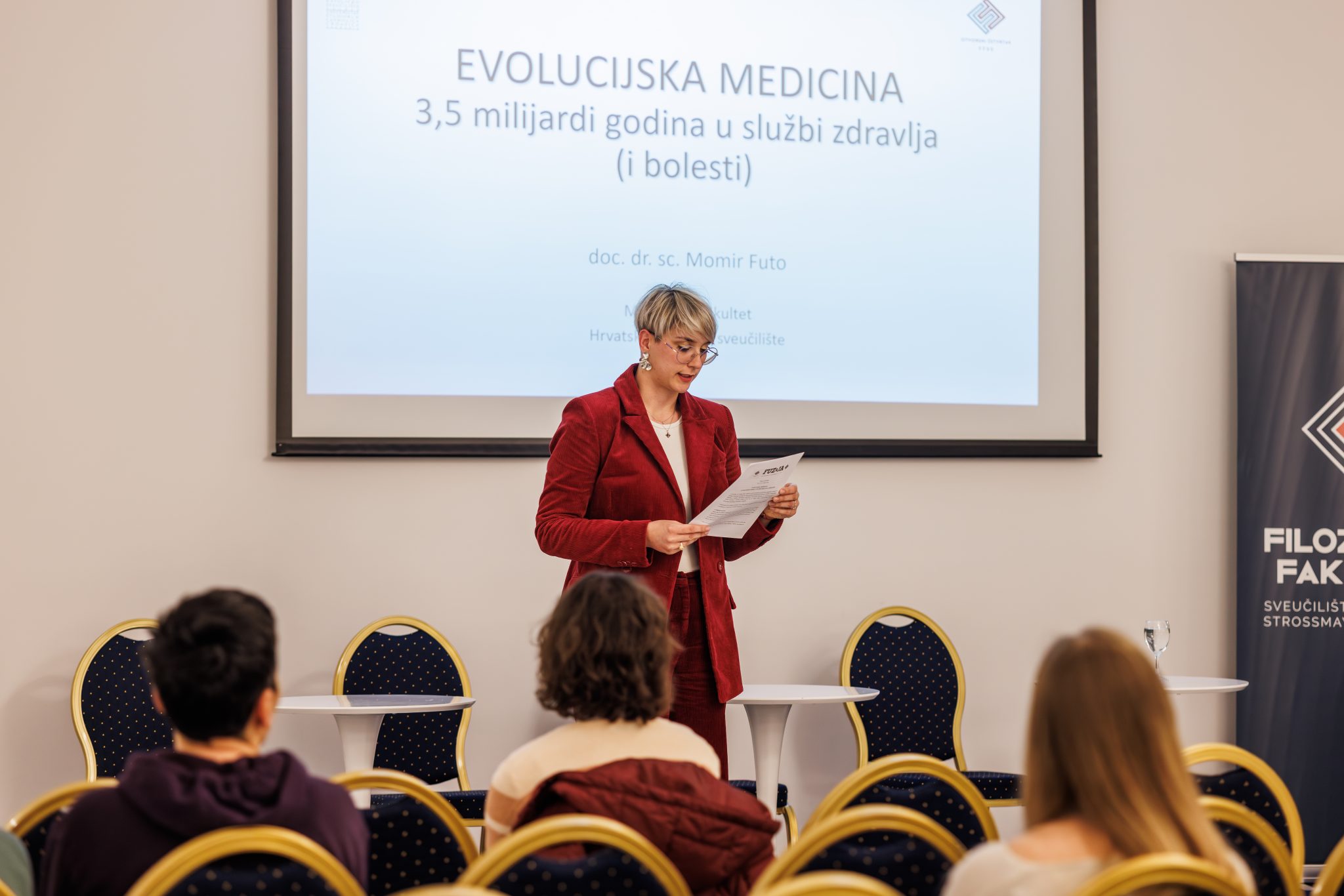 U četvrtak, 26. ožujka 2026. održano je šesto popularno-znanstveno događanje u sklopu 14. ciklusa Otvorenog četvrtka, dijela projekta popularizacije znanosti FUZ&JA Filozofskog fakulteta u Osijeku. Predavanje, naslovljeno Evolucijska medicina: 3,5 milijardi godina u službi zdravlja (i bolesti), održao je doc. dr. sc. Momir Futo s Medicinskog fakulteta Hrvatskog katoličkog sveučilišta u Zagrebu. U središtu izlaganja bilo je temeljno pitanje evolucijske medicine: zašto neka bolest uopće postoji?