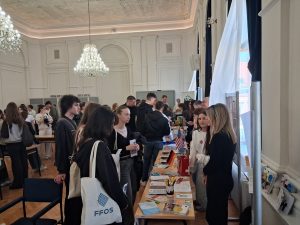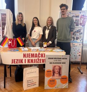 Na našem su štandu učenici dobili informacije o studiju njemačkog jezika i književnosti, kao i promotivne materijale DAAD-a i ÖSD-a o mogućnostima mobilnosti tijekom studija. Pokazali su interes za dvopredmetni studij te su postavljali pitanja o sadržaju programa, na koja su dobili detaljne odgovore. Istaknute su i dodatne aktivnosti poput pub kvizova, filmskih večeri, kazališnih radionica i podcasta te sudjelovanje u radu književnog kluba, a posebnu su pažnju privukle i mogućnosti studentskog zaposlenja u Austriji kroz program Sprachassistenz. O tom je programu iz vlastitog iskustva govorila studentska predstavnica Mia-Sofi Mišetić.