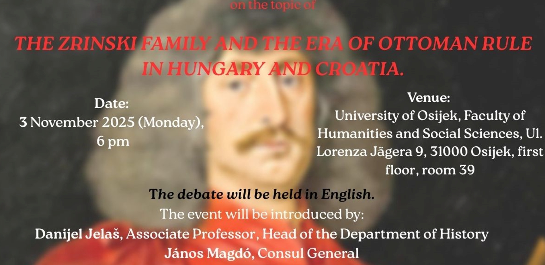 U organizaciji Generalnog konzulata Republike Mađarske u Osijeku i Odsjeka za povijest Filozofskog fakulteta u Osijeku u ponedjeljak 3. studenog 2025. godine održat će se okrugli stol pod naslovom “The Zrinski Family and the Era of Ottoman Rule in Hungary and Croatia”.