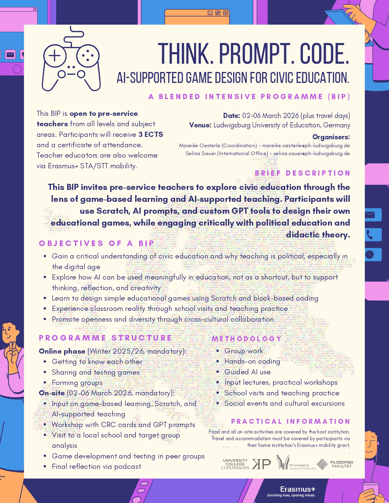 Otvorene su prijave za Blended Intensive Programme (BIP) pod nazivom “Think. Prompt. Code. – AI-supported game design for civic education”.