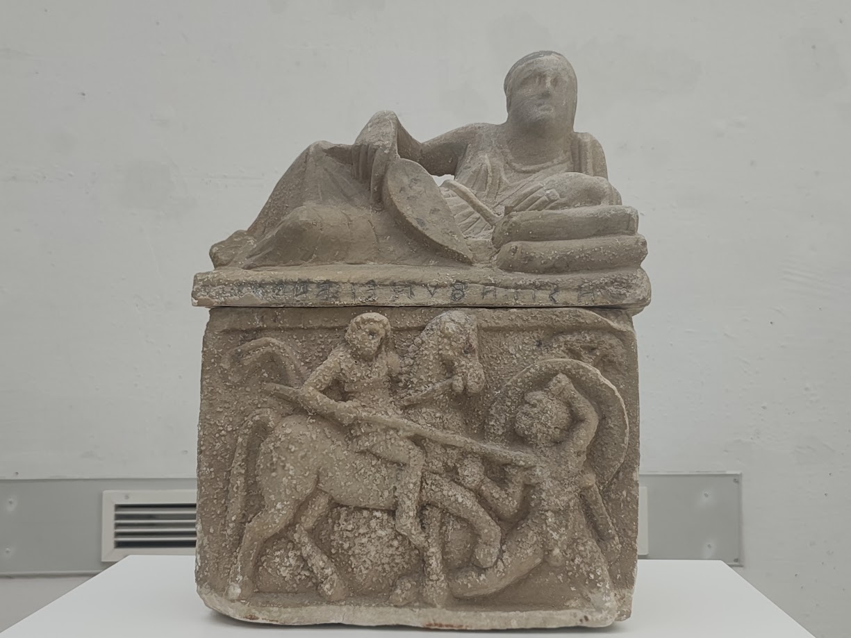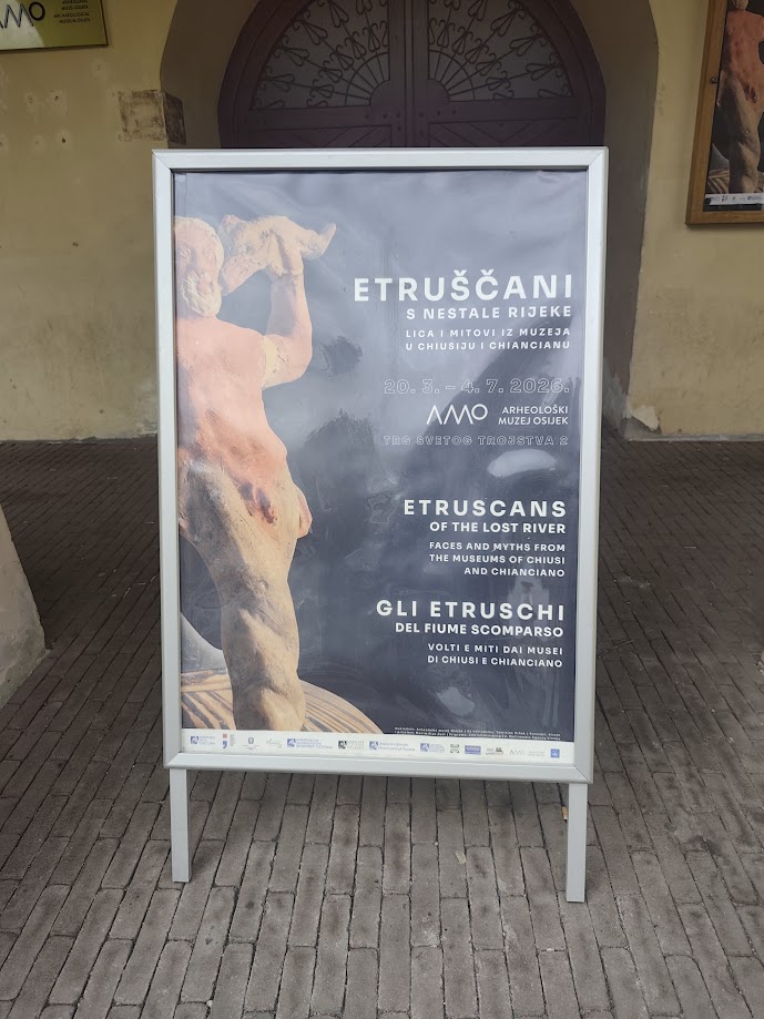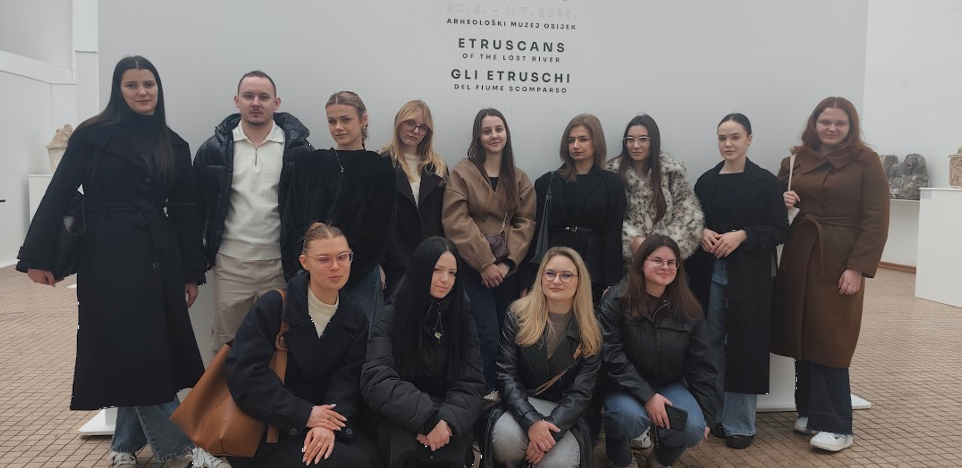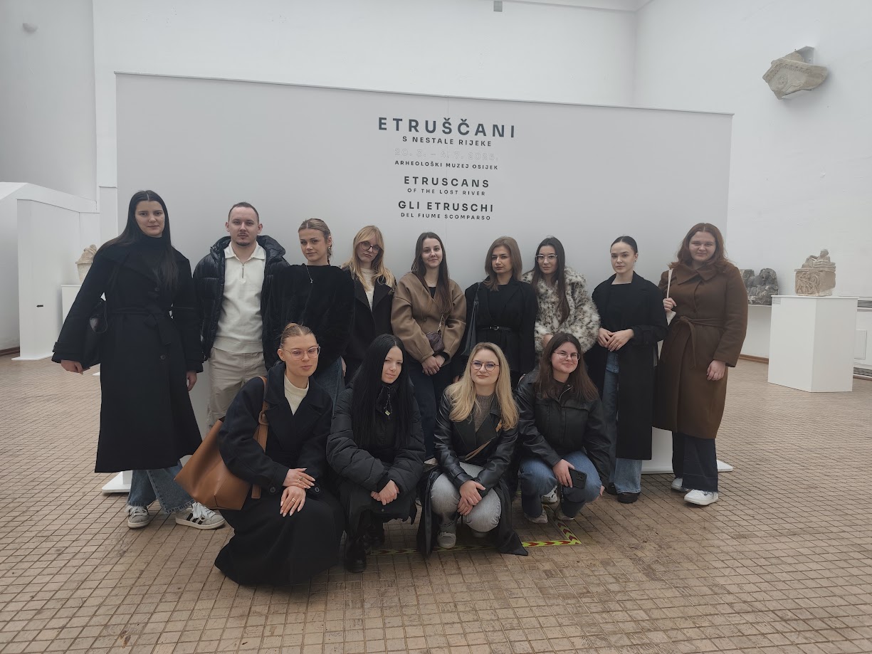 Studenti druge godine hrvatskoga jezika i književnosti koji pohađaju izborni kolegij Jezik srednjovjekovnih simbola nositeljice prof. dr. sc. Milice Lukić posjetili su u 1. travnja 2026. izložbu Etruščani s nestale rijeke – Lica i mitovi iz muzeja u Chiusiju i Chiancianu u osječkom Arheološkom muzeju.
