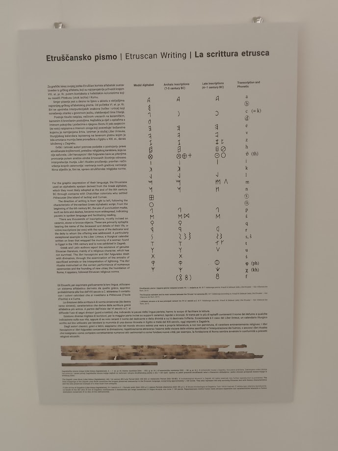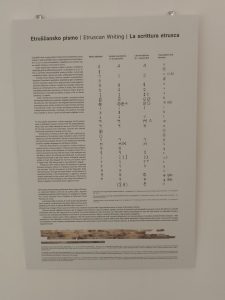 Kako je riječ o jednoj od najzagonetnijih i najutjecajnijih europskih civilizacija staroga vijeka, u čijem krilu se, po svemu sudeći u 8. st. pr. Kr., razvio alfabetski sustav (latinica) izveden iz grčkoga alfabeta, primarni je interes studijskoga razgledanja izložbe bio uočiti razvijenu i složenu simboliku koja se osim u pismovnom smislu može podijeliti u još tri skupine koje čine politički i statusni simboli, vjerski i mistični te mitološki i umjetnički.