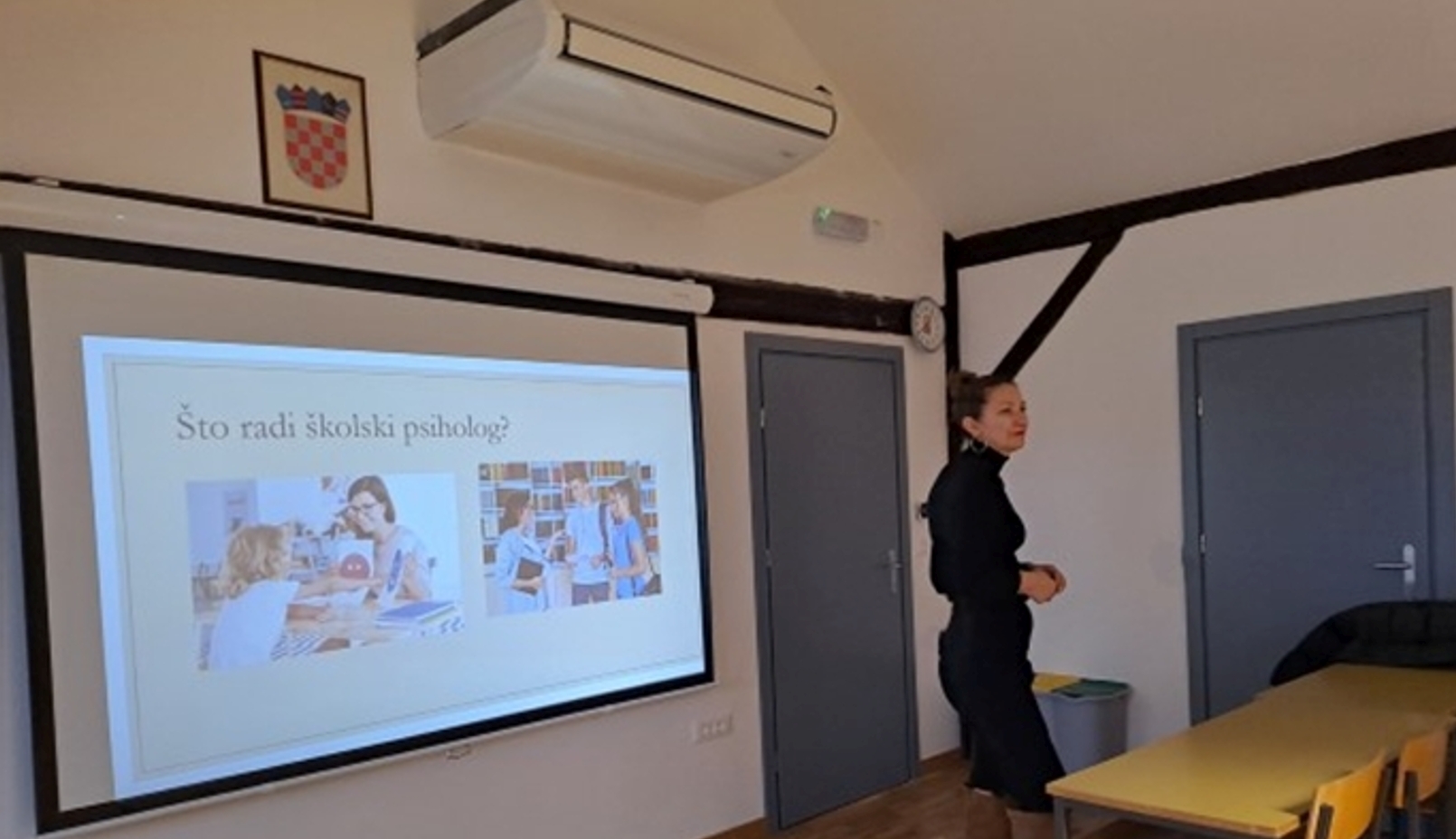 Prvi dio predavanja posvećen je razgovoru o poslovima školskog psihologa u osnovnoj školi i tome kako prepoznati da dijete treba poseban oblik školovanja. Ljiljana Šapić Kozar govorila je o dijagnostičkim sredstvima koje koristi kako bi dobila što jasniju sliku o tome koji je izvor teškoće kod učenika u savladavanju školskog programa. Studenti su dobili uvid u neke primjere nalaza psihologa na temelju kojeg se (uz druge nalaze i informacije) donose odluke o primjerenom obliku školovanja.