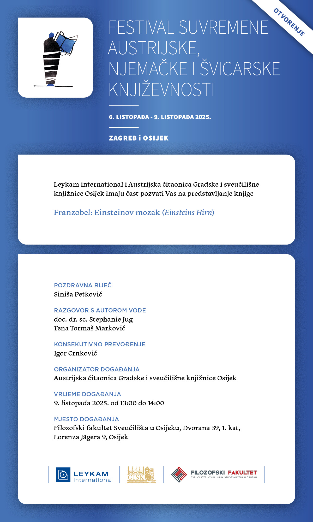 • Poziv na razgovor s autorom Franzobelom o romanu “Einsteins Hirn”/”Einsteinov mozak”