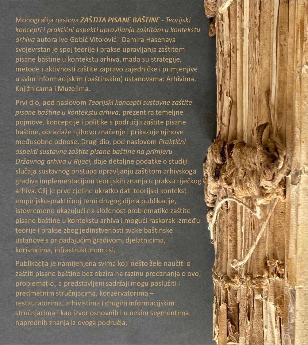 Predstavljanje znanstveno-stručne monografije ZAŠTITA PISANE BAŠTINE Objavljeno 10. studenoga 2025. | Administrator