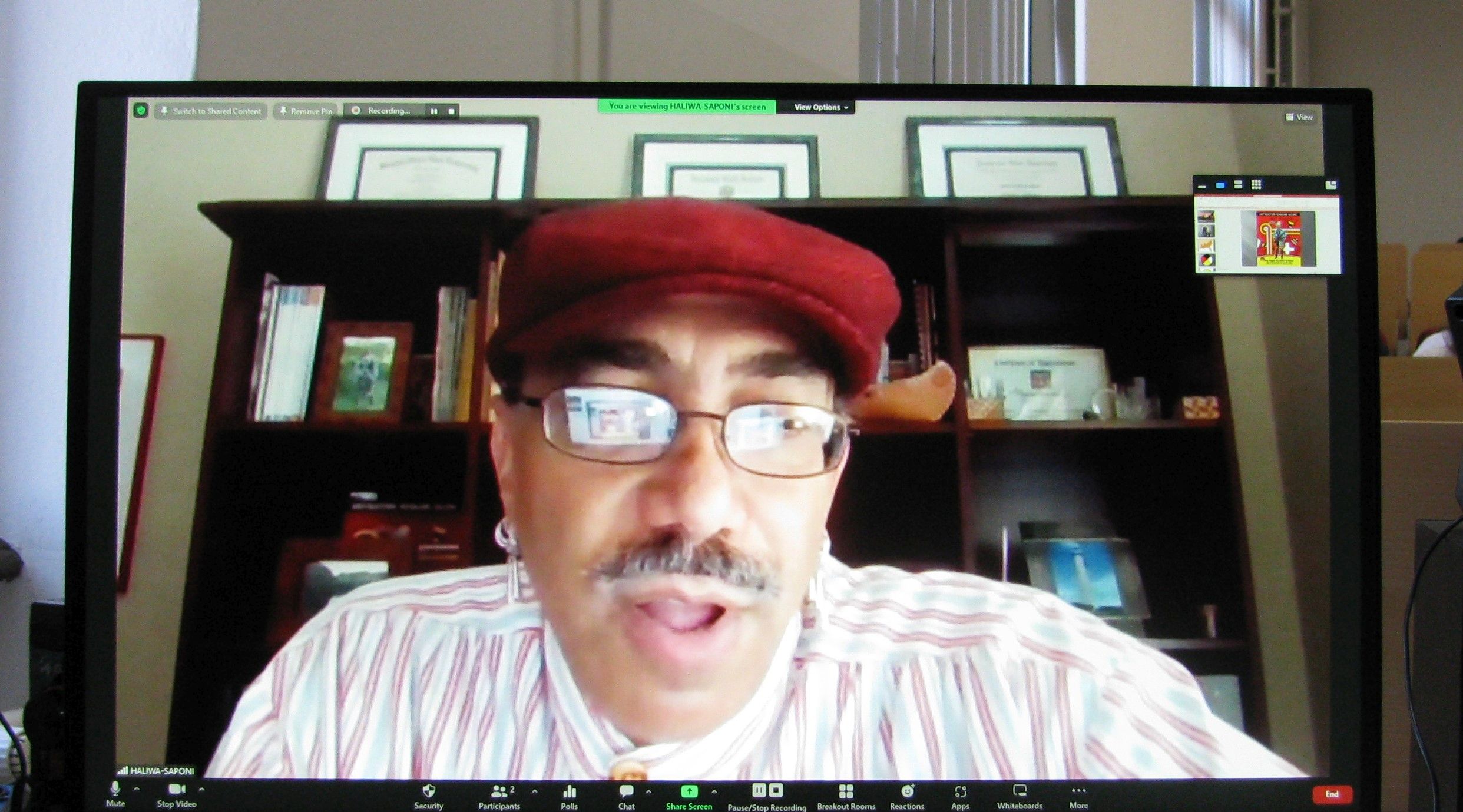 Dana 19. svibnja 2022., u okviru nastavne jedinice Uključivanje izvornog govornika u nastavu i upoznavanje studenata s američkim starosjedilačkim kulturama, prof. Jamie K. Oxendine, pripadnik plemena Lumbee iz Sjeverne Karoline, održao je pozvano online predavanje o simbolima i dizajnu indijanskih naroda američkog Jugoistoka. Predavanju su prisustvovali studenti preddiplomskog i diplomskog studija engleskoga jezika i književnosti koji pohađaju kolegije Multikulturalna književnost na engleskom jeziku i Književnost američkih Indijanaca. Predavanje je organizirala prof. dr. sc. Sanja Runtić.