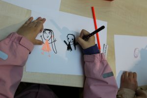 U drugom dijelu radionice sudionici su crtali određene emocije, prikazujući kako zamišljaju osjećaje poput sreće, tuge ili ljutnje. Tim su zadatkom povezali likovni izraz s razumijevanjem emocija i jezika. Posebno zanimljiva aktivnost bila je i mapiranje emocija na tijelu. Sudionici su dobili zadatak postaviti emoji simbole na siluetu ljudskog tijela te označiti gdje u tijelu osjećaju određene emocije – primjerice sreću, nervozu ili uzbuđenje. Ta aktivnost potaknula je razgovor o tome kako se emocionalna iskustva često očituju i u tjelesnim reakcijama.