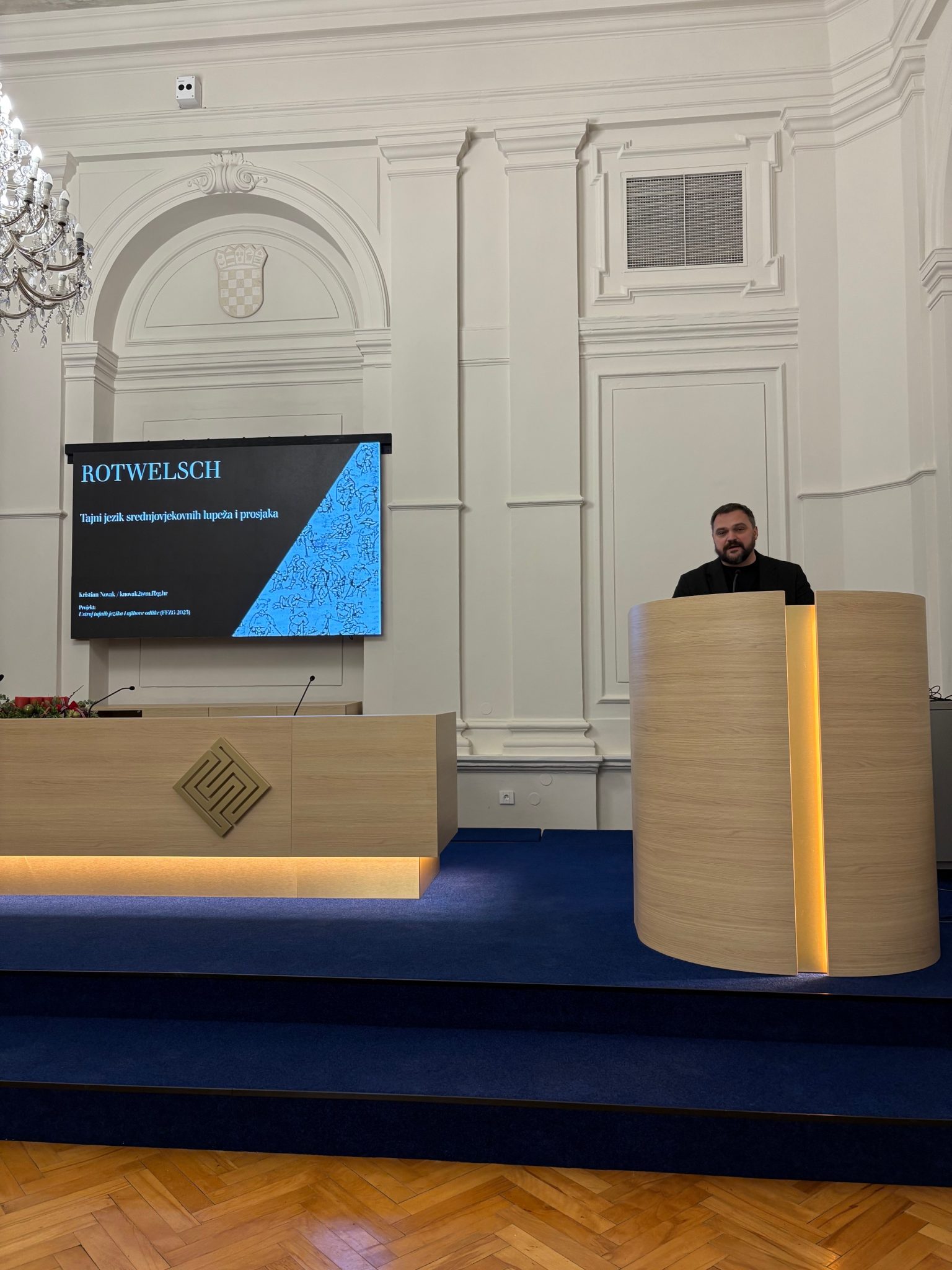 Dr. sc. Kristian Novak, izvanredni profesor na Odsjeku za germanistiku Filozofskog fakulteta Sveučilišta u Zagrebu, gostovao je na Filozofskom fakultetu u Osijeku 3. prosinca s predavanjem „Rotwelsch ‒ tajni jezik srednjovjekovnih lupeža i prosjaka“.