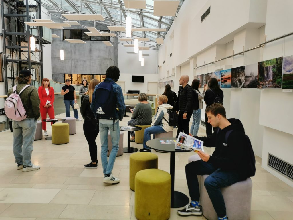 Studenti su u pratnji nastavnica, Sanjice Faletar i Kornelije Petr Balog, prvo posjetili Gradsku knjižnicu Požega koja je adaptirana i dograđena prije tri godine. Nakon stručnog obilaska svih knjižničnih odjela studenti su poslušali predavanje voditeljice matične službe Mirjane Franculić o organizacijskoj kulturi navedene knjižnice. U okviru predavanja studenti su imali prilike čuti i vrlo korisne informacije o samom procesu planiranja, adaptacije i selidbe knjižnice u nove prostore te utjecaju novog knjižničnog koncepta (i prostora) na upravljanje knjižničnim fondom i izmijenjenu ulogu knjižnice u zajednici.