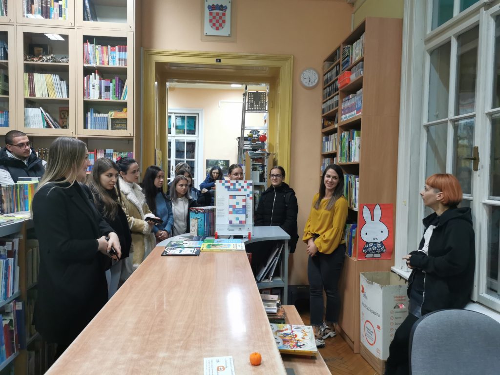 Dana 16. 11. 2023. studenti prve godine prijediplomskog studija Informatologija posjetili su Gradsku i sveučilišnu knjižnicu u okviru kolegija Osnove informacijske djelatnosti. S knjižničnim prostorom, odjelima, građom i uslugama upoznala ih je Andrea Sudarević, mag. informatologije.