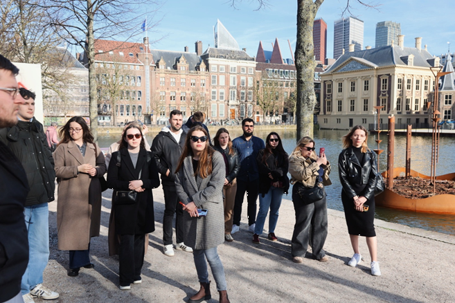 Trećeg dana organiziran je cjelodnevni izlet tijekom kojeg smo obišli najpoznatije gradove Nizozemske. Najprije smo posjetili Roterdam – poslovno središte države u kojem smo imali priliku vidjeti impresivnu modernu arhitekturu. Zgrada u obliku olovke, kockaste leteće kuće i tržnica Markthal samo su neke u nizu fotogeničih lokacija koje su studenti iskoristili za pojedinačne i grupne fotografije. Nakon obilaska Roterdama na red dolazi povijesni gradić Delft koji nas je također oduševio. Pored brojnih drevnih građevina grad Delft poznat je i po tome što su u njemu živjeli Vilim Oranski, otac nizozemske države, kao i poznati slikar Johannes Vermeer čije je najpoznatije djelo Djevojka s bisernom naušnicom. Pauzu za ručak napravili smo u najpoznatijem nizozemskom ljetovalištu Scheveningenu na obali Sjevernog mora. Posljednja destinacija koju smo obišli tog dana bila je politička prijestolnica države Den Haag. Grad je poznat po međunarodnom sudu pravde, brojnim veleposlanstvima raznih država te suvremenoj arhitekturi koju obilježavaju brojni visoki i impresivni neboderi. Nizozemci često na slikovit način opisuju svoje gradove pa tako vole reći da je Amsterdam grad zabave i živahnog noćnog života, Rotterdam središte poslovnih prilika i modernog razvoja, dok je Den Haag idealno mjesto za miran i kvalitetan život.