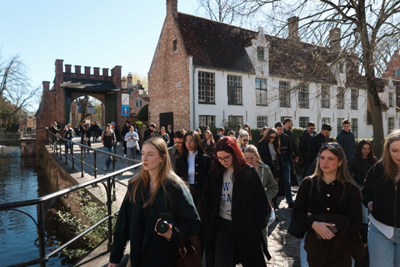 Nakon obilaska velikih nizozemskih gradova sljedećeg dana na red je došla i Belgija. Najprije smo se zaputili u grad Brugee, grad koji doslovno izgleda kao da smo zakoračili u srednji vijek. Na svakom koraku susretali smo se s impozantnim gotičkim tornjevima i raskošno ukrašenim, pozlaćenim zgradama koje dodatno naglašavaju veličanstven izgled grada. Nije trebalo dugo da naši studenti proglase ovaj grad “najsretnijim gradom na svijetu”. Tijekom šetnje imali smo priliku i kušati poznate belgijske waffle, koji su svojim okusom savršeno upotpunili cijeli doživljaj. Dolazak u Gent bio je pravo osvježenje nakon Bruggea – grad slične povijesne ljepote, ali s nešto življom, urbanijom atmosferom. Već pri ulasku u centar osjetili smo posebnu energiju mjesta u kojem se prošlost i sadašnjost savršeno isprepleću. Tijekom obilaska čuli smo i jednu zanimljivu lokalnu priču – legendu o tzv. “pivskom ratu”. Prema predaji, studenti Genta u 16. stoljeću pobunili su se protiv poreza na pivo, što je dovelo do sukoba s vlastima. Iako priča ima više simbolično nego povijesno značenje, ova nas je legenda posebno zainteresirala, pa se ubrzo razvila rasprava o tome koje je belgijsko pivo najbolje. Šetnju smo nastavili uz rijeku, gdje su nas dočekale poznate cehovske kuće čija su pročelja građena od kamena i cigle s bogatim detaljima i raznolikim oblicima. Nakon cjelodnevnog istraživanja Belgije u kasnim večernjim satima zaputili smo se prema našem smještaju. Umorni, ali ispunjeni dojmovima polako smo privodili dan kraju svjesni da smo iza sebe ostavili najljepši dan putovanja koji ćemo još dugo pamtiti.