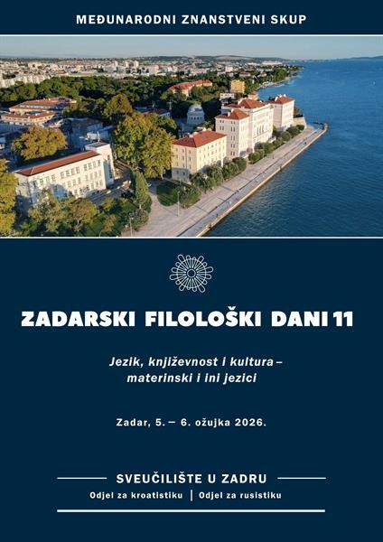Profesor Jakov Sabljić i profesorice Dubravka Brunčić, Tina Varga Oswald, Vera Blažević Krezić i Ivana Buljubašić Srb naš su Odsjek i Fakultet predstavljali na Međunarodnome znanstvenome skupu Zadarski filološki dani 11 (Jezik, književnost i kultura – materinski i ini jezici) koji se na Sveučilištu u Zadru održavao 5. i 6. ožujka 2026. u organizaciji Odjela za kroatistiku i Odjela za rusistiku.