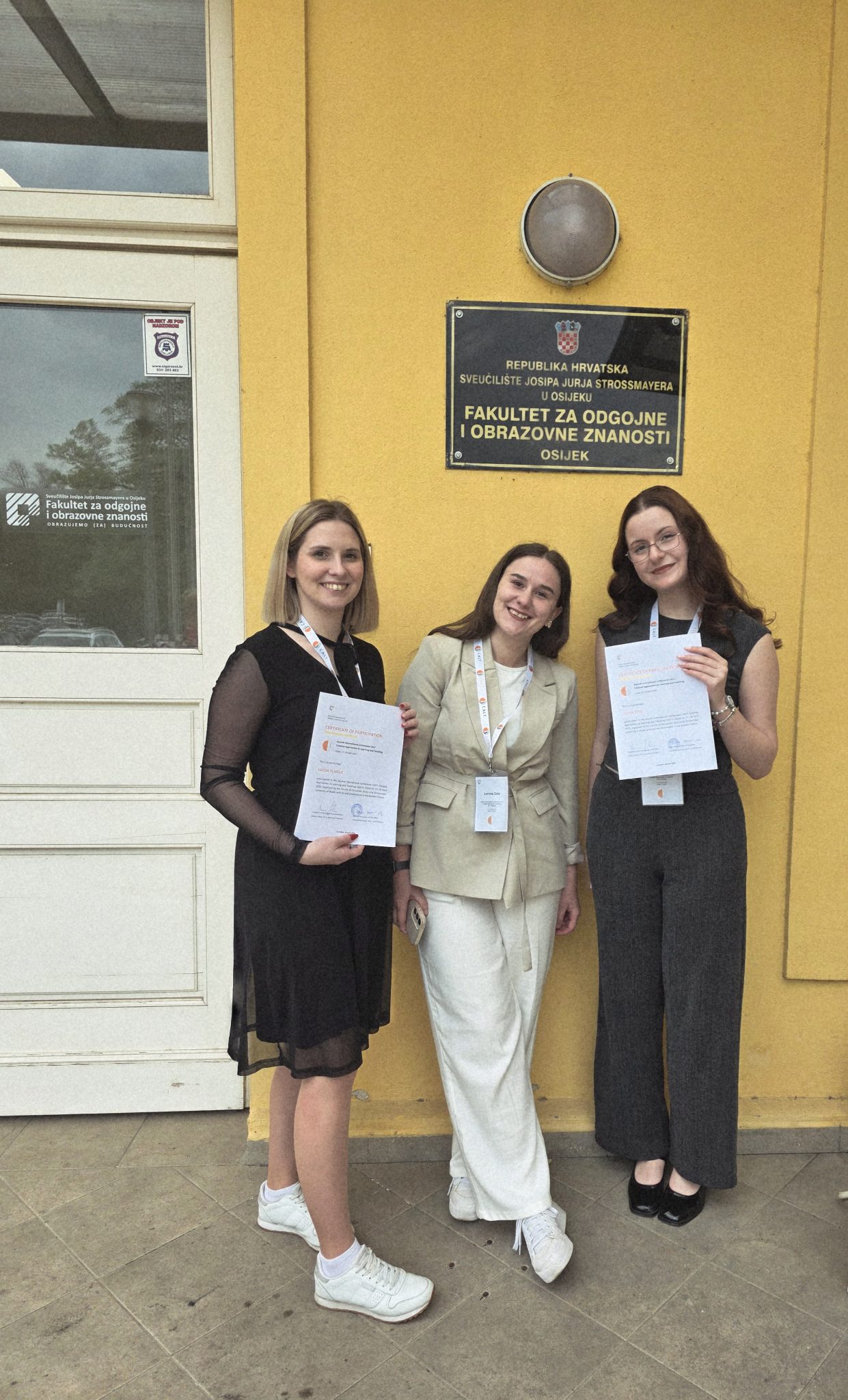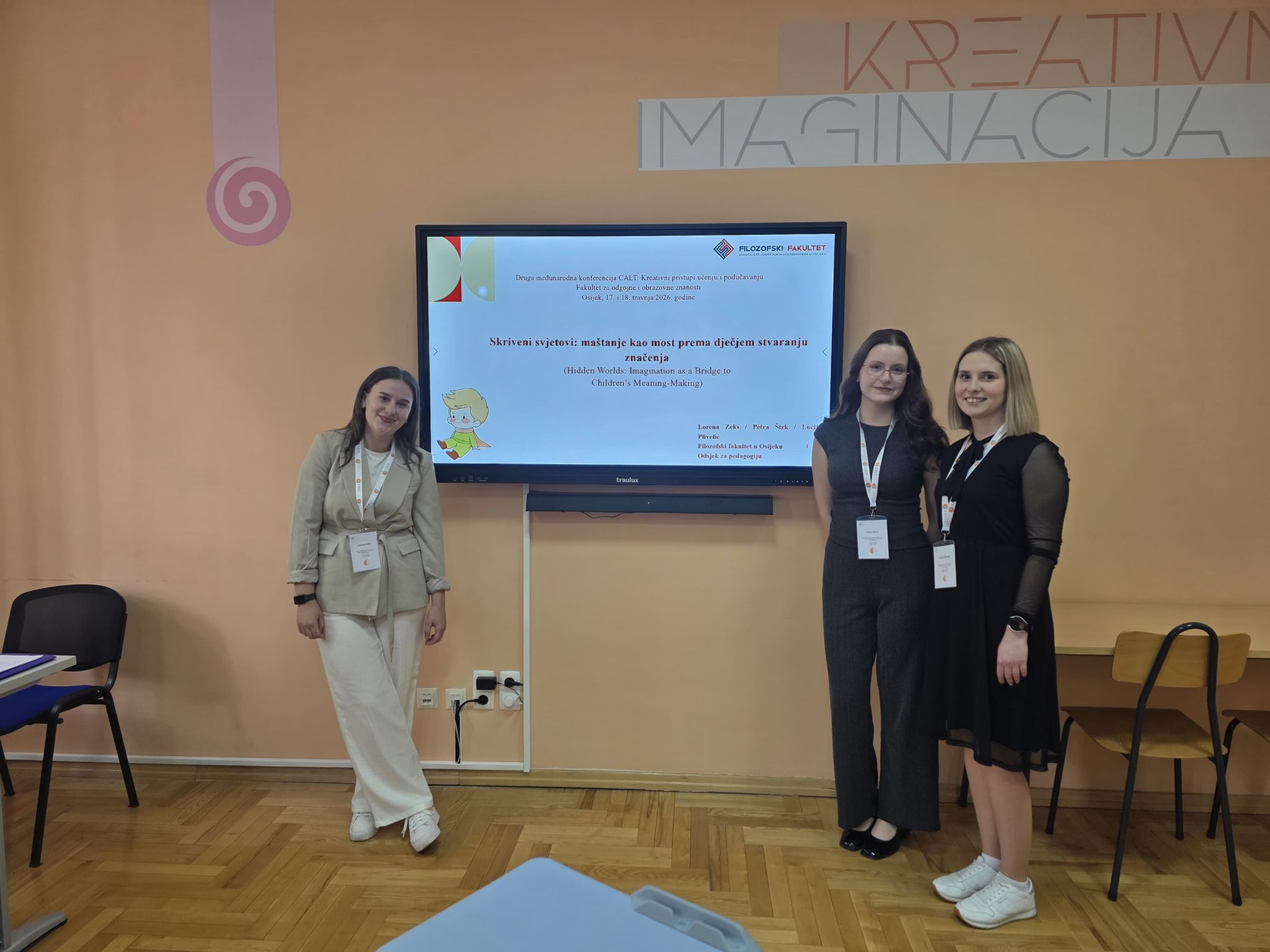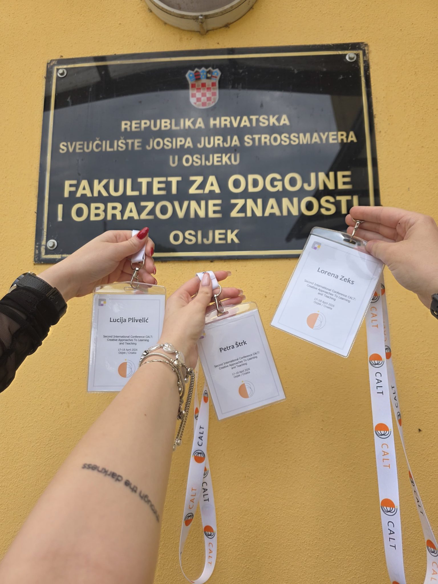 U petak i subotu, 17. i 18. travnja 2026. godine, studentice 1. godine Sveučilišnog diplomskog dvopredmetnog studija Pedagogija, Lorena Zeks, Petra Štrk i Lucija Plivelić, pod mentorstvom više asistentice dr. sc. Katarine Bogatić, sudjelovale su na 2. međunarodnoj konferenciji CALT pod nazivom “Kreativni pristupi učenju i poučavanju”. Konferencija se održavala u organizaciji Fakulteta za odgojne i obrazovne znanosti Sveučilišta J. J. Strossmayera u Osijeku.
