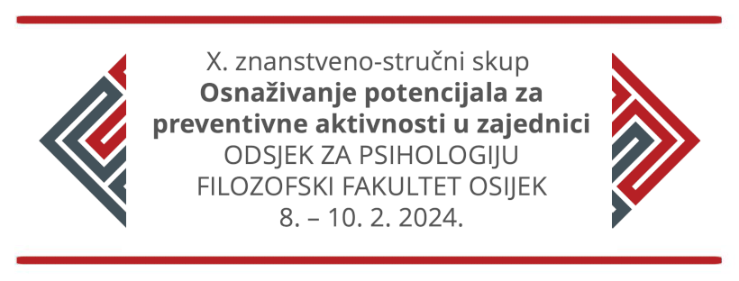 s veseljem Vas obavještavamo da će se od 8. do 10. veljače 2024. godine održati jubilarni znanstveno-stručni skup koji organizira Odsjek za psihologiju Filozofskog fakulteta u Osijeku, X. skup Osnaživanje potencijala za preventivne aktivnosti u zajednici.