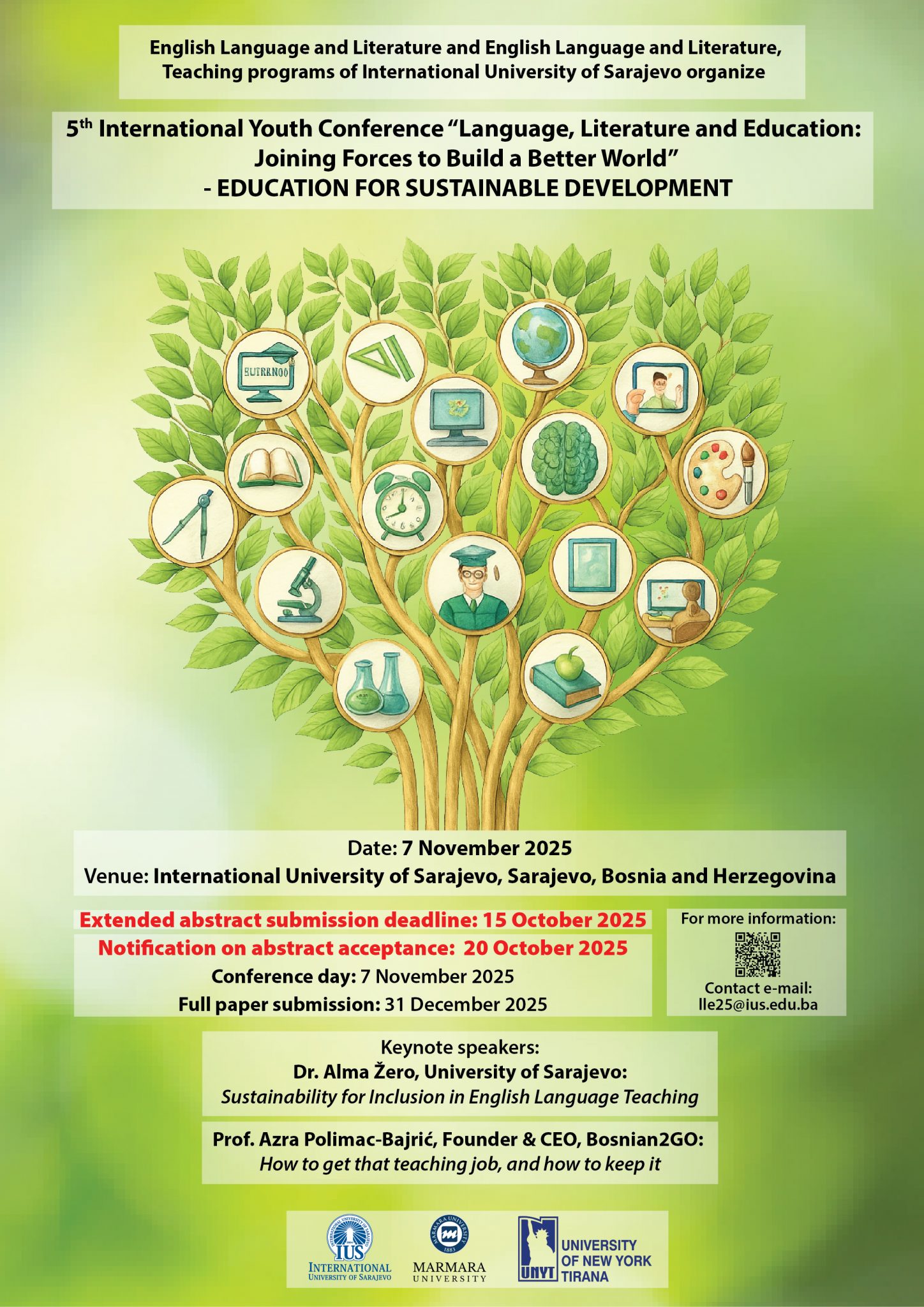 International University of Sarajevo organizes the 5th International Youth Conference “Language, Literature and Education: Joining Forces to Build a Better World” – EDUCATION FOR SUSTAINABLE DEVELOPMENT.
