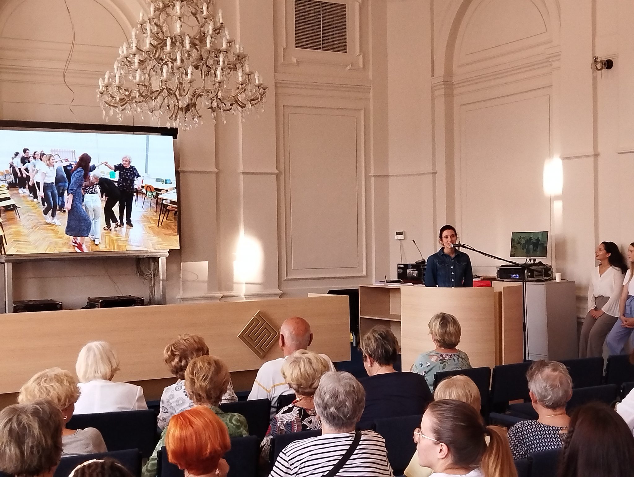 Završni skup studenata pedagogije i umirovljenika iz udruga Aktivni umirovljenici Osijek i Sindikat umirovljenika Hrvatske Osijek održan je u srijedu, 29. svibnja 2024. u obnovljenoj Velikoj svečanoj dvorani Filozofskog fakulteta Osijek s početkom u 14 sati. Na skupu je predstavljen ovogodišnji doprinos studenata I. godine diplomskog studija Pedagogije zbirci gerontogoških radionica, koja ulazi u posljednju fazu uređivanja. Na zbirci su dr. sc. Mia Filipov, asistentica i izv. prof. dr. sc. Renata Jukić surađivale sa studentima Pedagogije ak. god. 2021./2022., 2022./2023. i 2023./2024. u okviru kolegija Andragogija. Završni skup s umirovljenicima pozdravnim je govorom otvorio pročelnik Odsjeka za pedagogiju prof. dr. sc. Goran Livazović, nakon kojega se okupljenima obratila predmetna asistentica dr. sc. Mia Filipov. Asistentica je prvotno objasnila motivaciju za nastanak zbirke gerontogoških radionica te ciljeve seminarske nastave iz kolegija Andragogija: 1) osposobiti buduće pedagoge za rad s osobama treće životne dobi i 2) doprinijeti kvaliteti života osoba treće životne dobi. Asistentica je potom okupljenima retrospektivno prikazala ostvarene zajedničke aktivnosti umirovljenika i studenata, koje su uključivale osam gerontogoških radionica i dva neformalna susreta kod domaćina umirovljenika. Nakon toga sudionici skupa podijelili su se u više skupina sačinjenih od umirovljenika i studenata. Ova je aktivnost za cilj imala ponuditi povratne informacije o ostvarenim aktivnostima te ideje kako nastaviti pružati podršku studentima Pedagogije pri izgradnji profesionalnih kompetencija za rad sa starijim osobama. Također, bilo je važno čuti i zamisli sudionika skupa o tome kako doprinijeti slobodnom vremenu starijih osoba, a posebice o ulozi pedagoga u tom procesu. Skup su moderirale studentice II. godine diplomskog studija Pedagogije Katarina Mikulić i Lucija Mustač, a na kraju skupa dodijeljene su zahvalnice umirovljenicima i studentima za ostvarene aktivnosti. Sudionici skupa, i oni stariji i mlađi, iskazali su veliko zadovoljstvo ostvarenim radionicama i ponudili smjernice za daljnju suradnju, kojoj se ponajviše vesele zbog međugeneracijskog druženja.