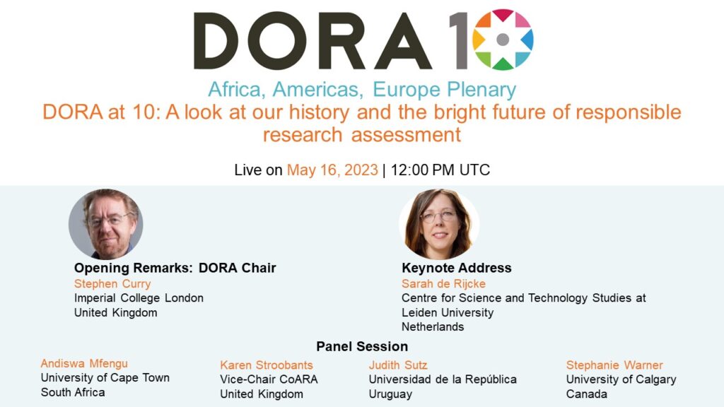 We’re hosting two virtual plenary sessions on May 16 to reflect on a decade of DORA and to look to the future of responsible research assessment. We can’t wait to see you there for #DORAat10!