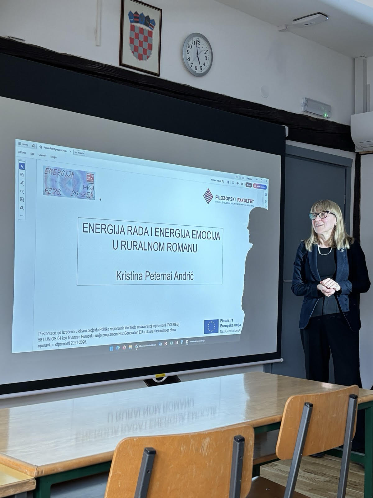 Kristina Peternai Andrić održala je 21. travnja 2026. predavanje Energija rada i energija emocija u ruralnom romanu. Na predavanju je bilo riječi o romanu Na njivama Mile Miholjević, smještenom u slavonsko selo početkom 20. stoljeća. Roman je interpretiran kao tekst u kojem su rad i emocije nerazdvojivi, odnosno kao prikaz ruralne svakodnevice obilježene iscrpljujućim radom, siromaštvom, nasiljem i društvenim nejednakostima. Poseban naglasak stavljen je na to kako se kroz ženske likove, klasne odnose i emocionalnu dimenziju svakodnevice razotkriva ekonomija preživljavanja u selu, pri čemu se pokazuje to da se životna energija ne lomi samo na razini rada, nego i na razini emocija.